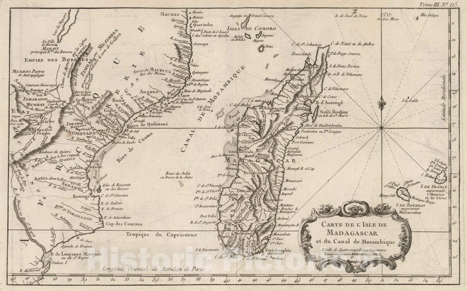 • .Historic Map : Madagascar; Mozambique, , Africa 1764 Carte de L'Isle de Madagascar et du Canal de Mozambique , Vintage Wall Art