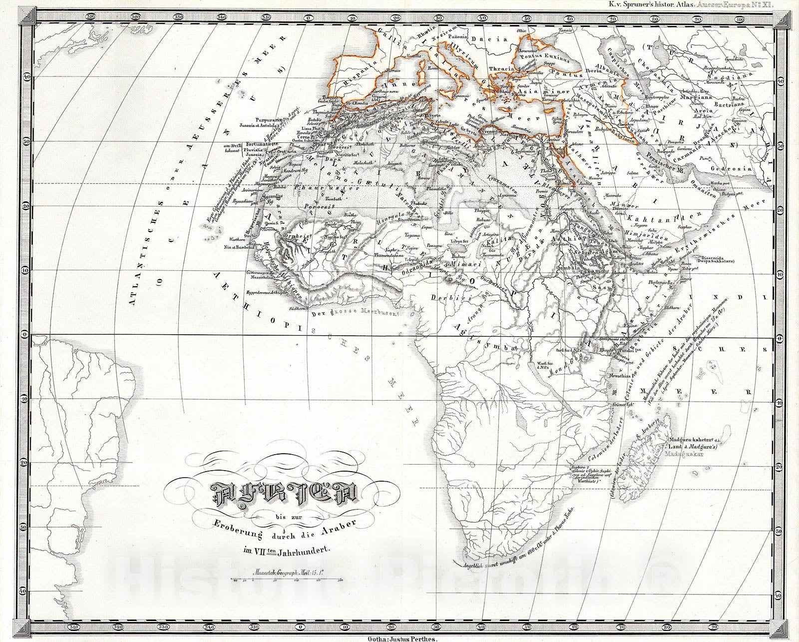 Historic Map : Perthes Map of Africa Prior to The Arab Invasions of The 7th Century , 1855, Vintage Wall Art