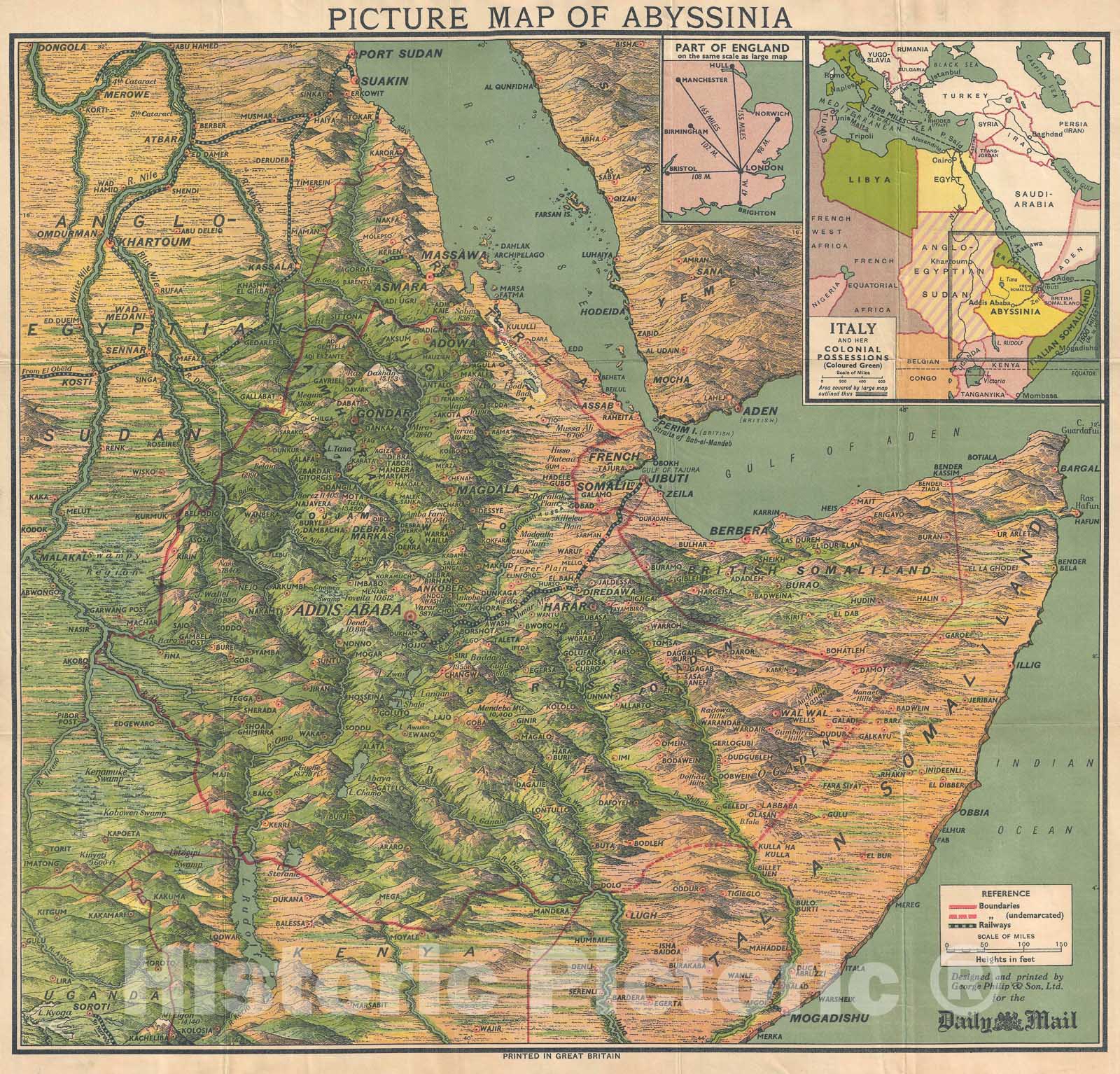 Pictorial Map of Pictorial East Africa: Ethiopia, Somalia, and Sudan, Philip, 1935