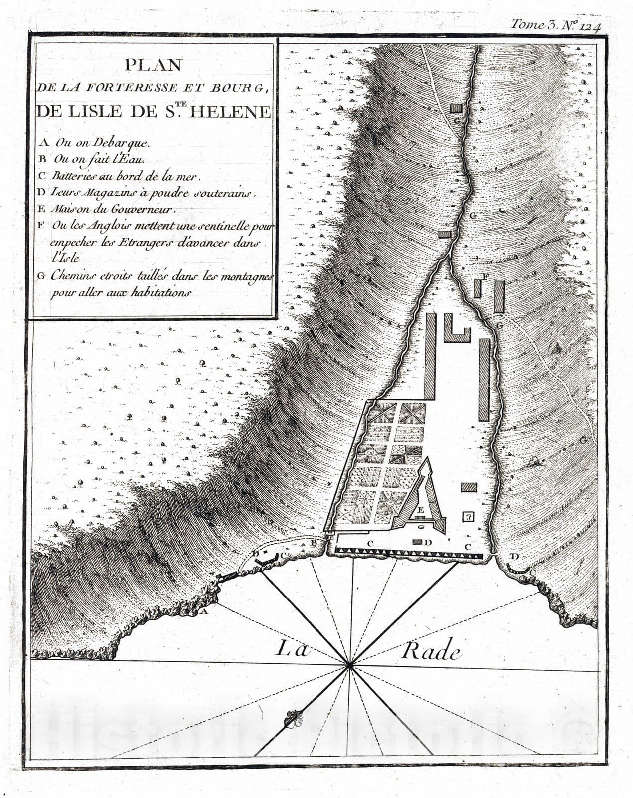 Historic Map : Saint Helena, Africa 1764 Plan de la Forteresse et Bourg, de l'Isle de Ste. Helene , Vintage Wall Art