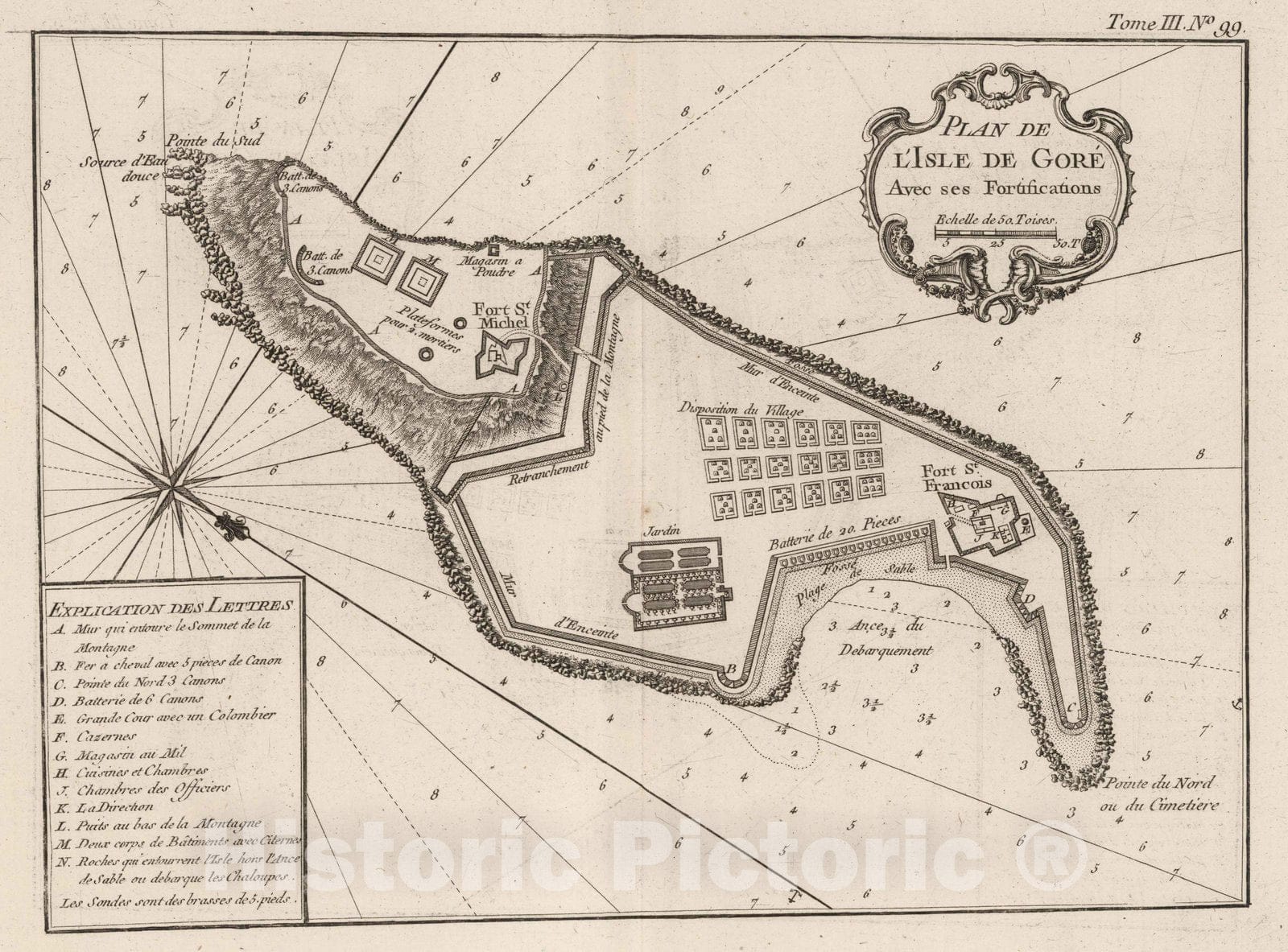 Historic Map : Senegal, , Africa 1764 Plan de l'Isle de Gore avec ses Fortifications , Vintage Wall Art