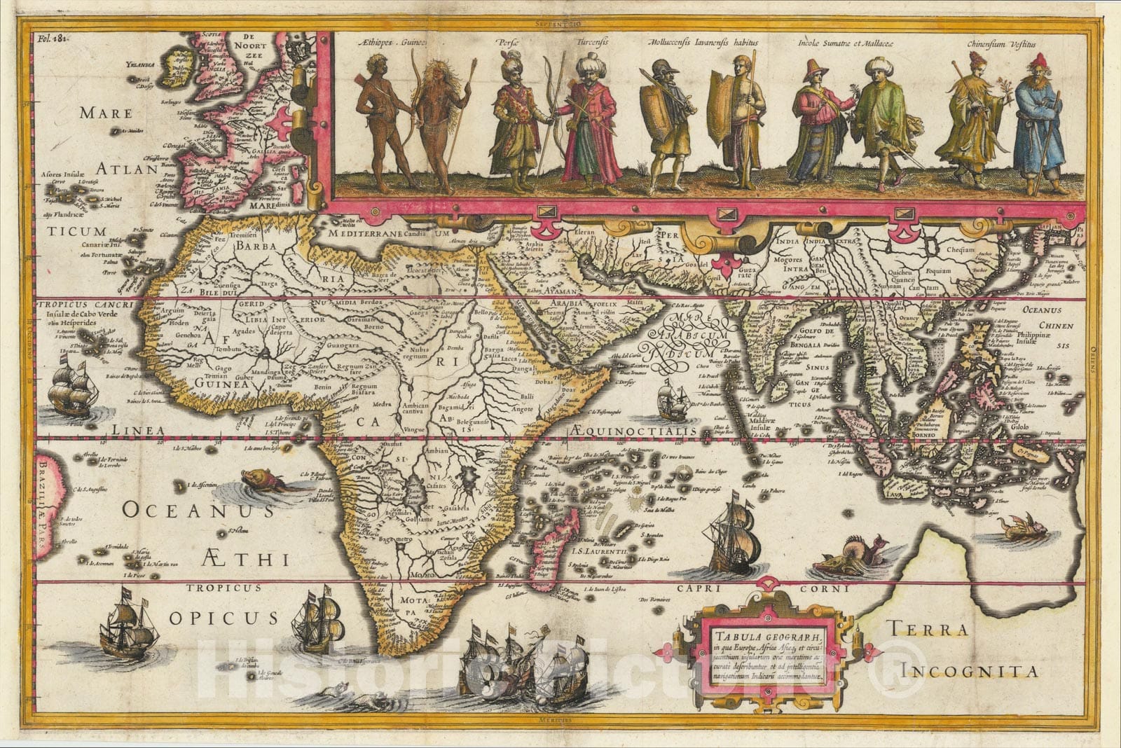 • Historic Map : Tabula Geograph in qua Europae, Africae, Asiaeq, c1611, Johannes Isaksen Pontanus, Vintage Wall Art