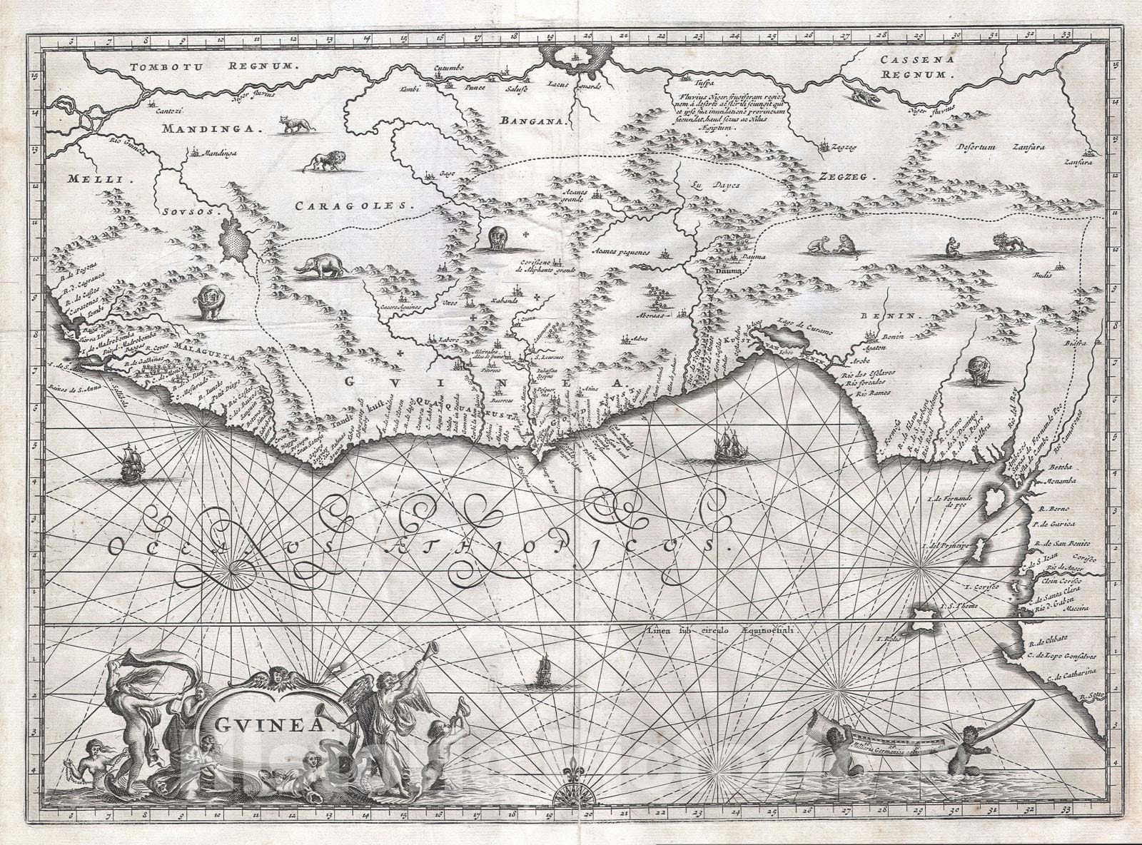 Historic Map : West Africa " Gold Coast, Slave Coast, Ivory Coast ", Ogilby, 1670, Vintage Wall Art