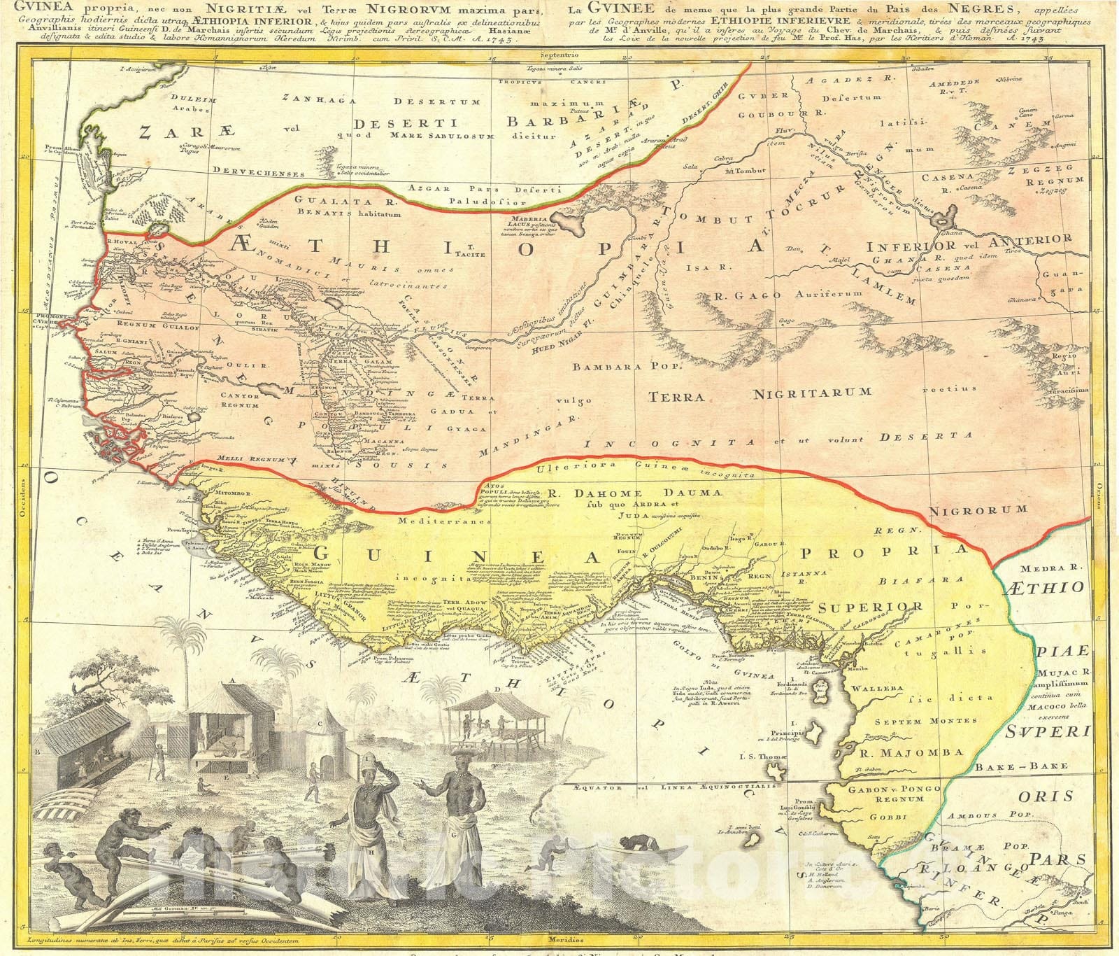 • .Historic Map : West Africa " Slave Trade references " 'Guinea', Homann Heirs, 1743, Vintage Wall Art