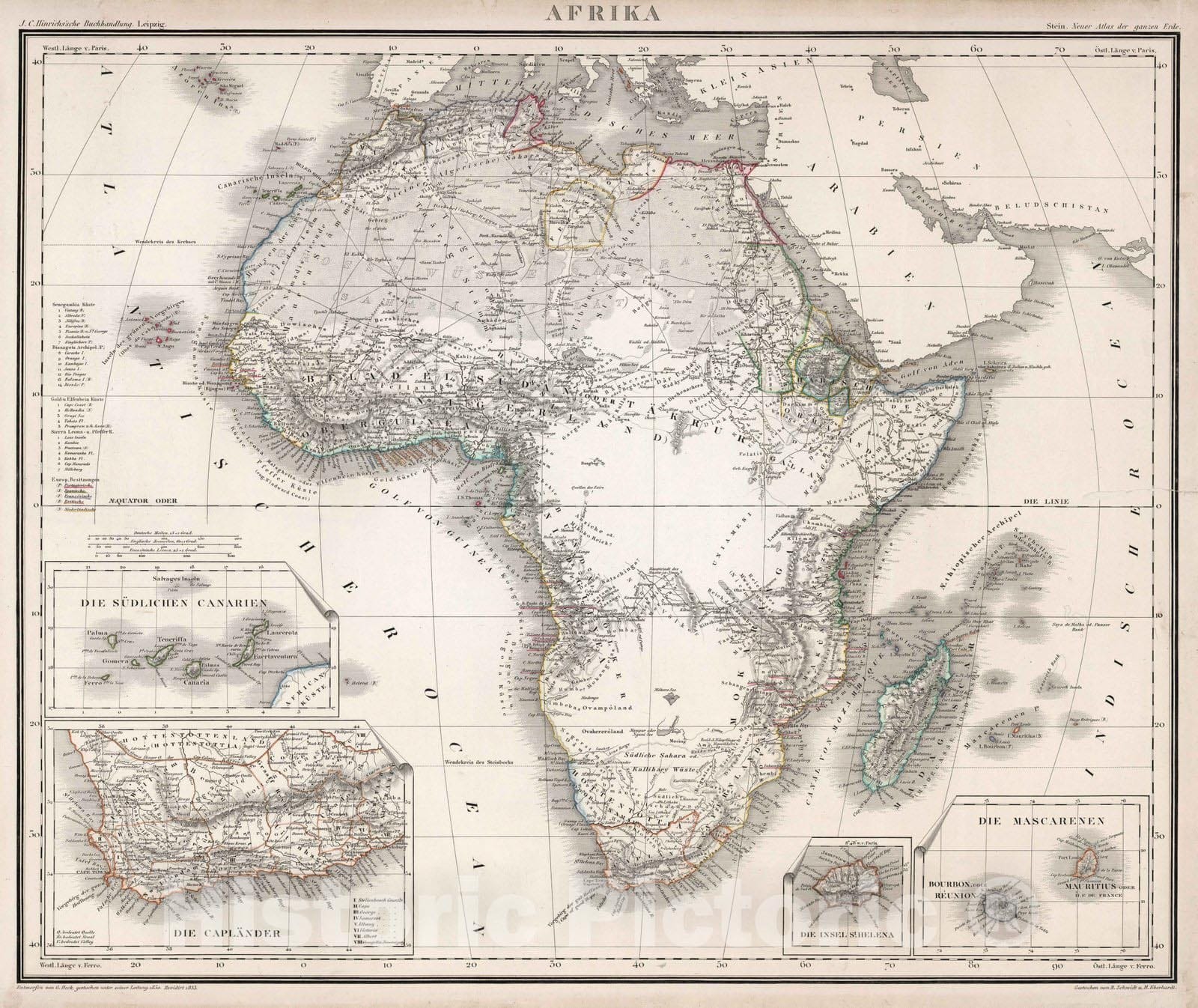 Historic Wall Map : Canary Islands, Africa 1853 Afrika. Entworfen von G. Heck , Vintage Wall Art