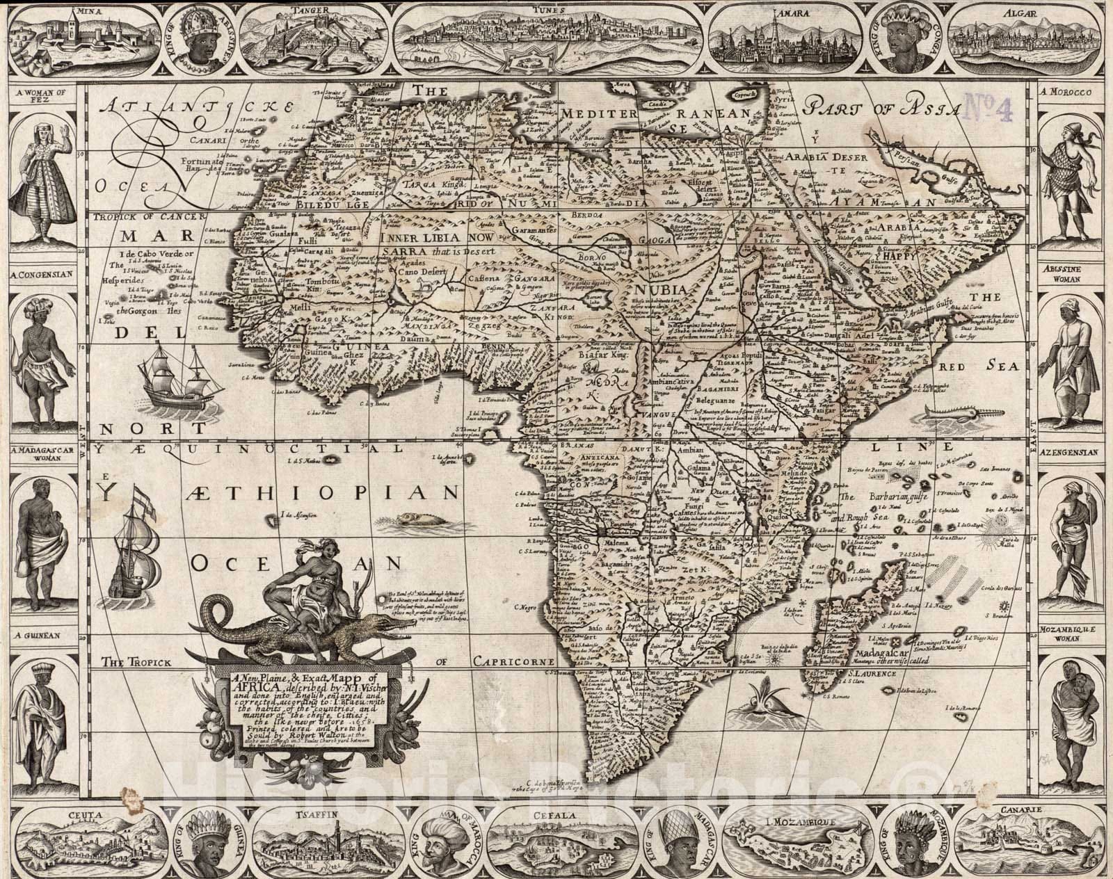 Historical Map, 1658 A New, Plaine, Exact mapp of Africa : described by N.I. Visscher and Done into English, Enlarged and Corrected, According to I. Blaeu, Vintage Wall Art