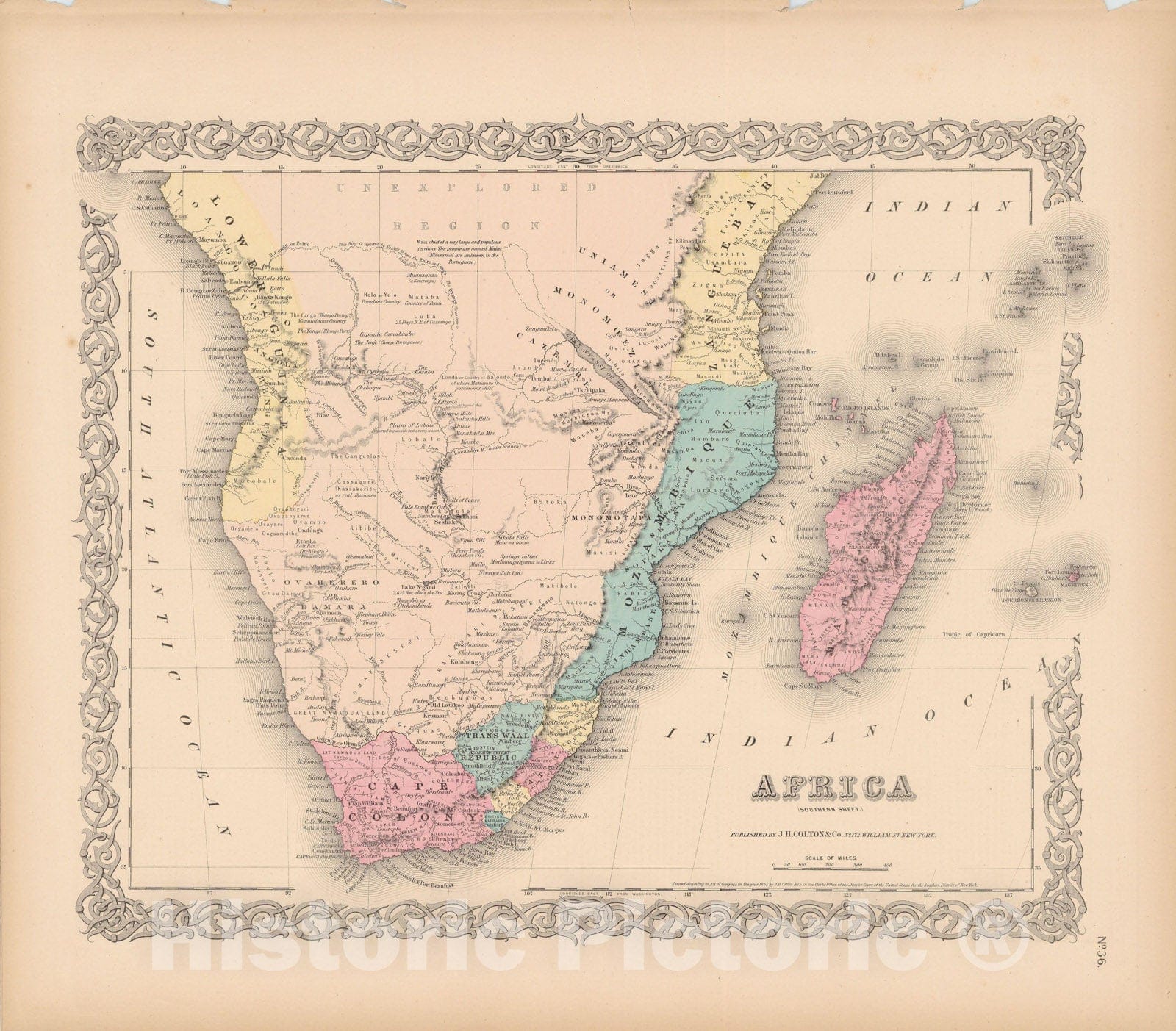 Historic Map : Africa 1856 , Colton's Atlas World , v3, Vintage Wall Art