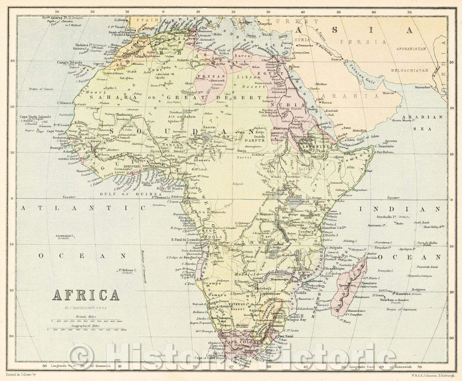 • .Historic Map : Africa, c. 1882 , Vintage Wall Art