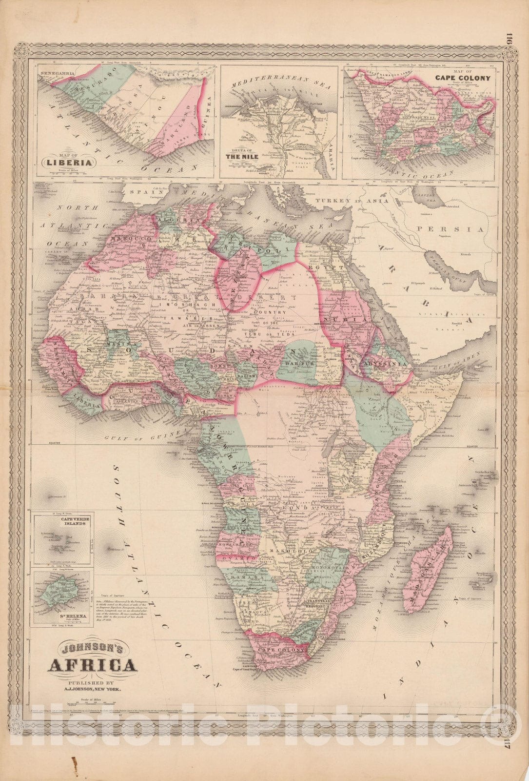 Historic Map : Family Atlas World, Africa 1873 , Vintage Wall Art
