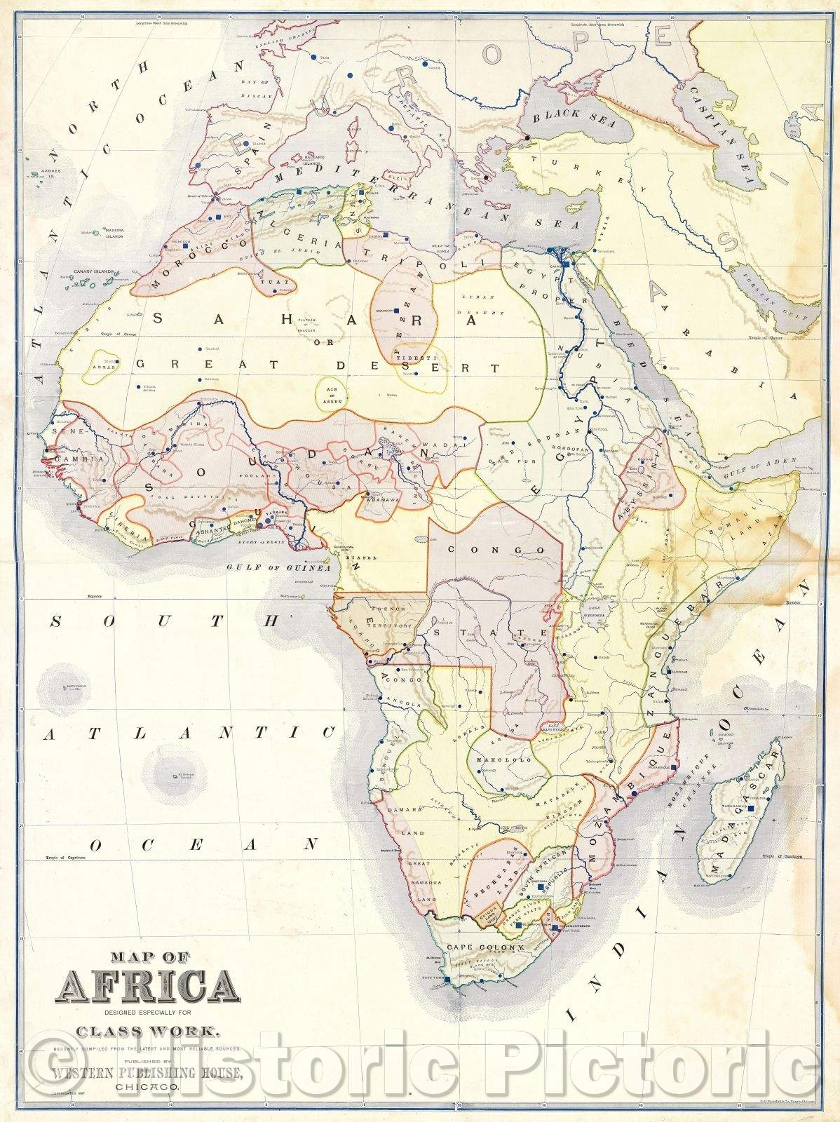 Historic Map : Sheet from Yaggy's Geographical Study: "Map of Africa Designed Especially for Class Work", 1887 , Vintage Wall Art