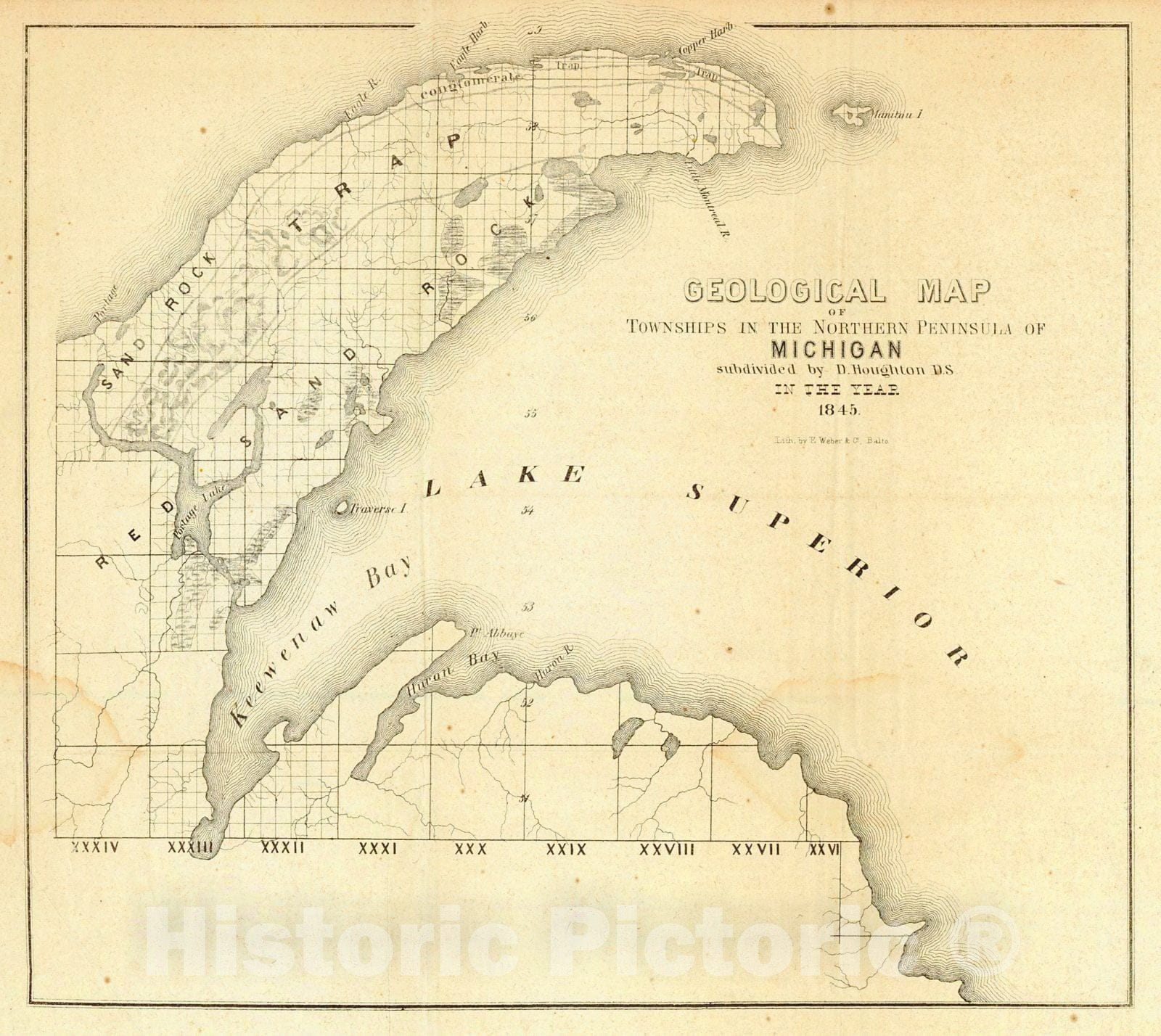 Historic Map : 1845 Geological Map of Townships in the Northern Peninsula of Michigan in the Year 1845 : Vintage Wall Art