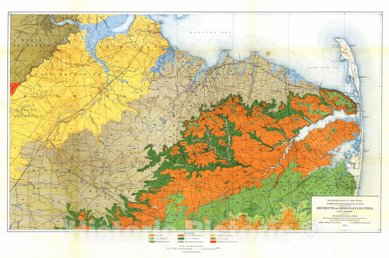 Historic Map : 1892 A Preliminary Geological Map of Portions of Monmouth and Middlesex Counties, New Jersey : Vintage Wall Art