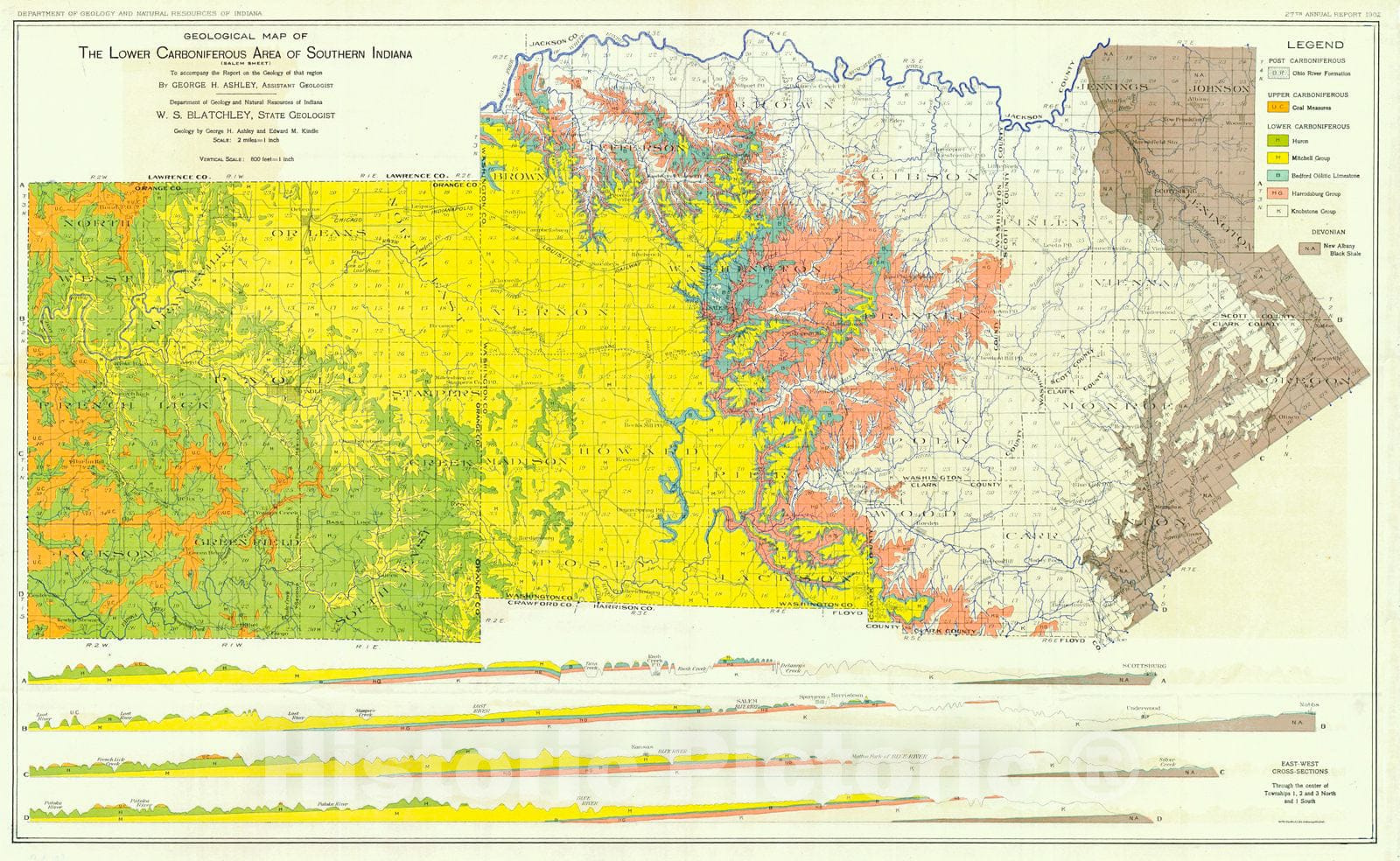 Historic Map : 1902 Geological Map od the Lower Carboniferous Area of Southern Indiana (Salem Sheet) : Vintage Wall Art