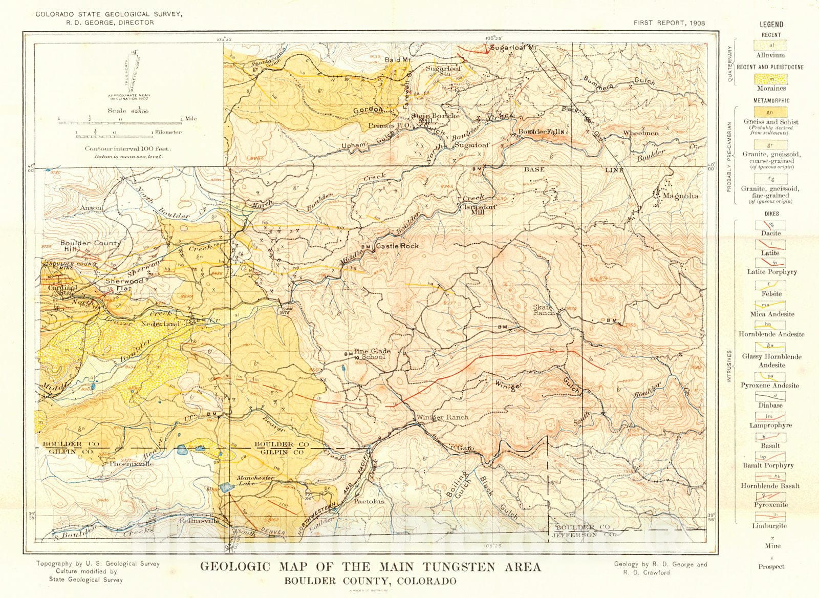 Vintage Map | 1908 Geological of the Main Tungsten Area, Boulder County, Colorado | Colorado State Geological Survey