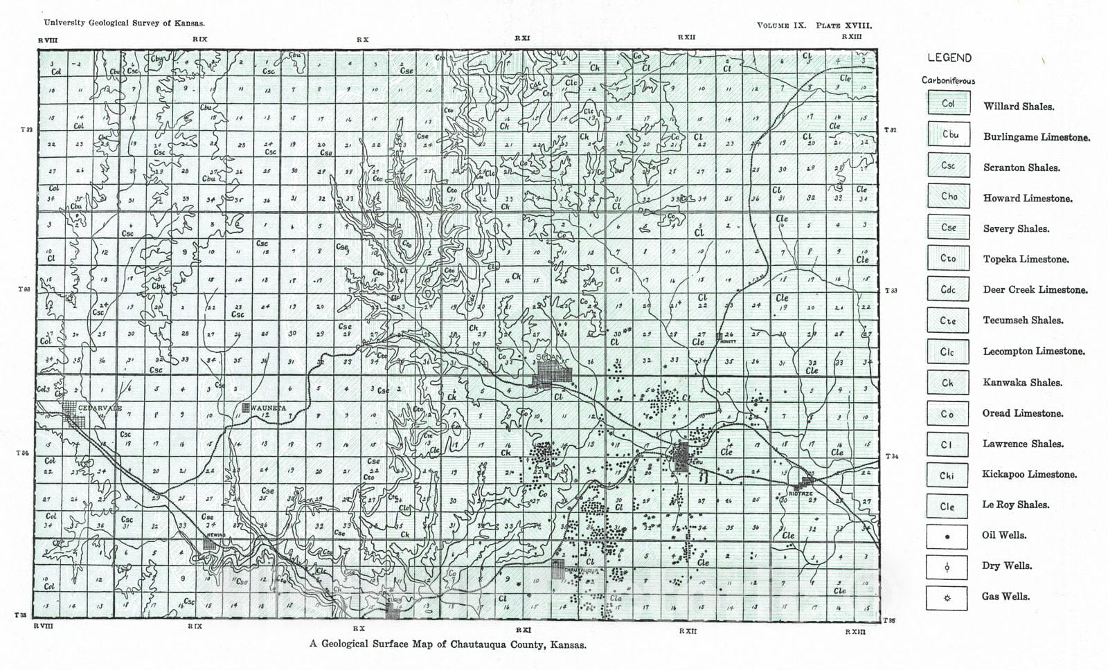 Vintage Map | 1908 A Geological Surface Map of Chautauqua County, Kansas | University Geological Survey of Kansas