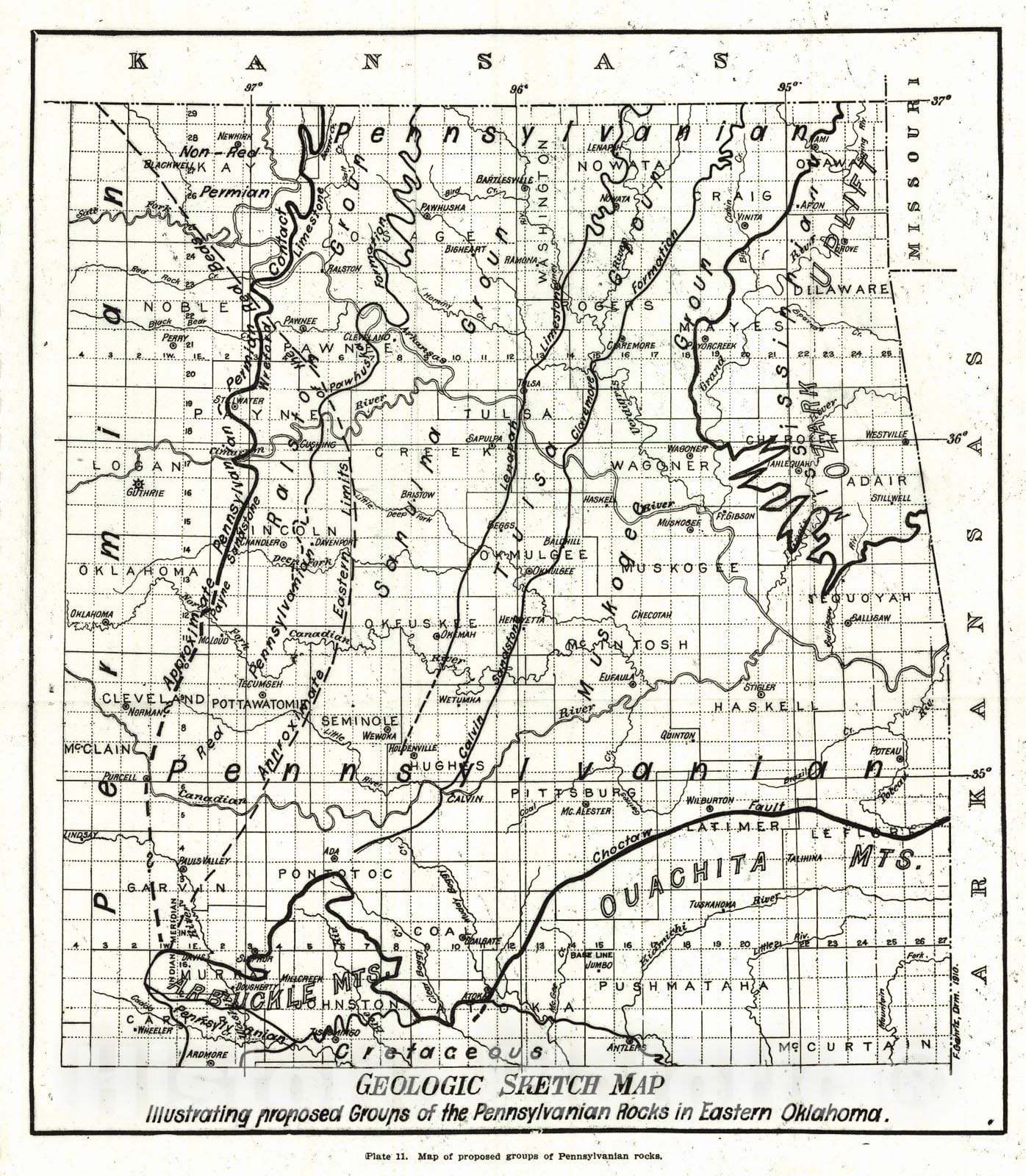 Vintage Map | 1911 Geologic Sketch Map Illustrating Proposed Groups of the Pennsylvanian Rocks of Eastern Oklahoma |
