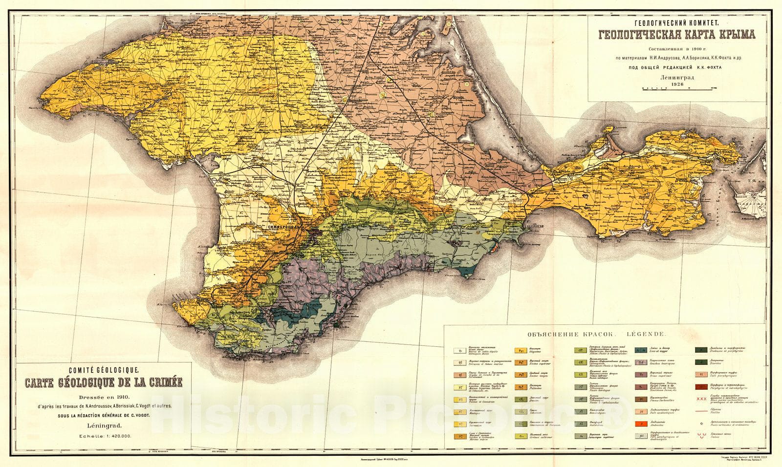 Historic Map : 1926 Carte Géologique de la Crimée (Geological Map of Crimea) : Vintage Wall Art