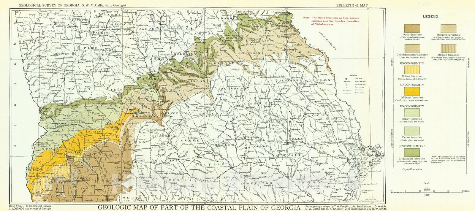 Vintage Map | 1929 Geologic Map of Part of the Coastal Plain of Georgia | Geological Survey of Georgia