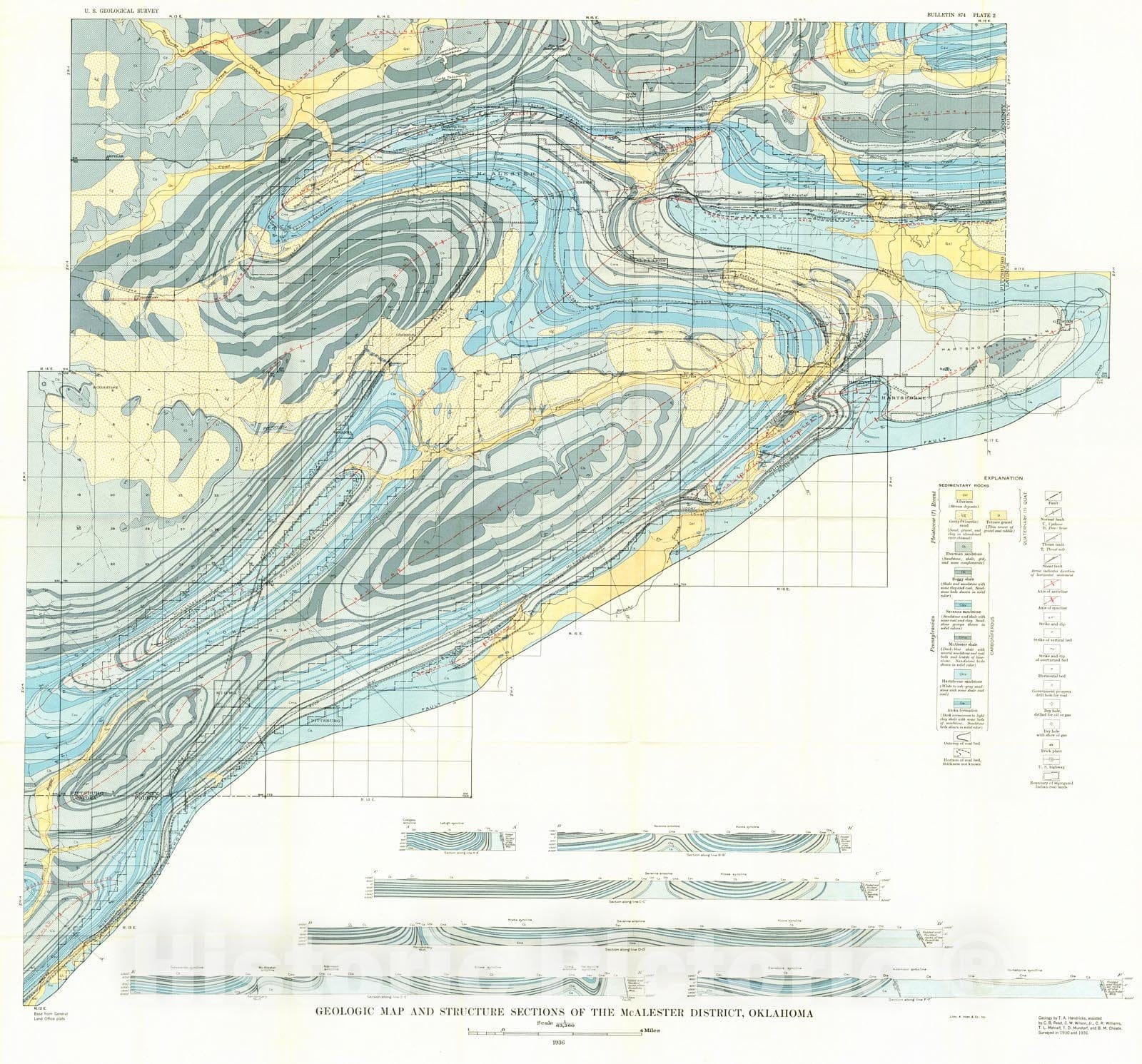 Vintage Map | 1936 Geologic map and structure sections of the McAlester District, Oklahoma |