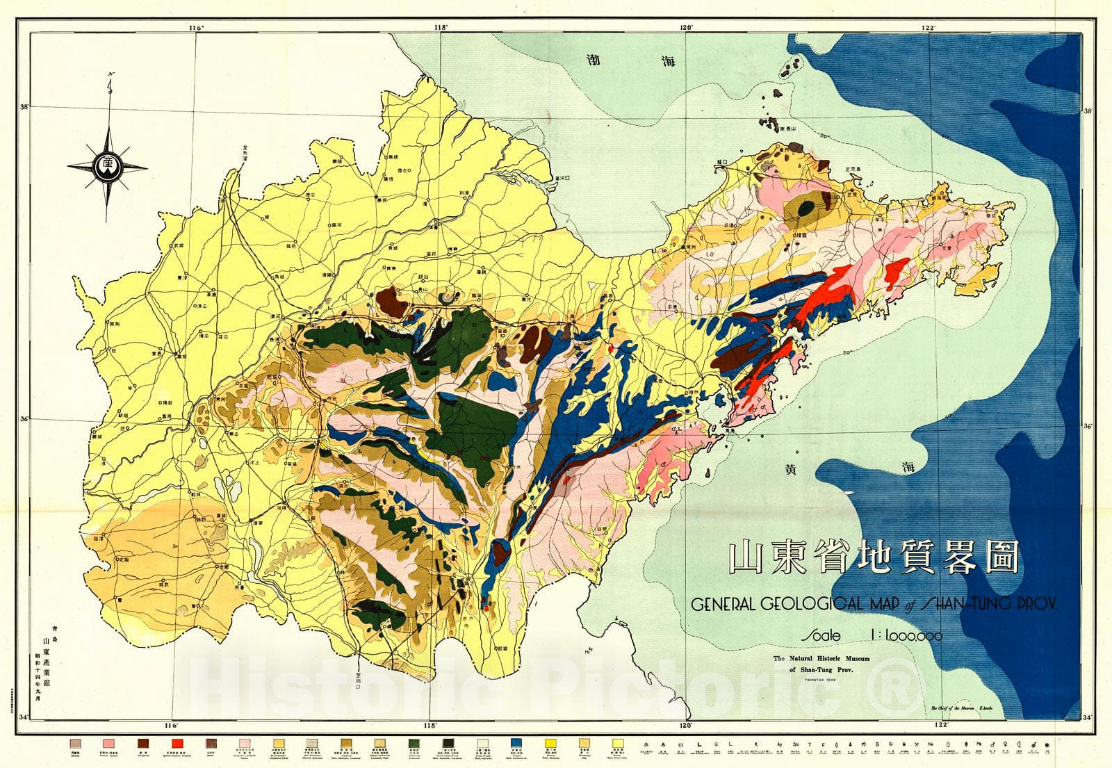 Historic Map : 1939 General Geological Map of Shan-Tung Province : Vintage Wall Art