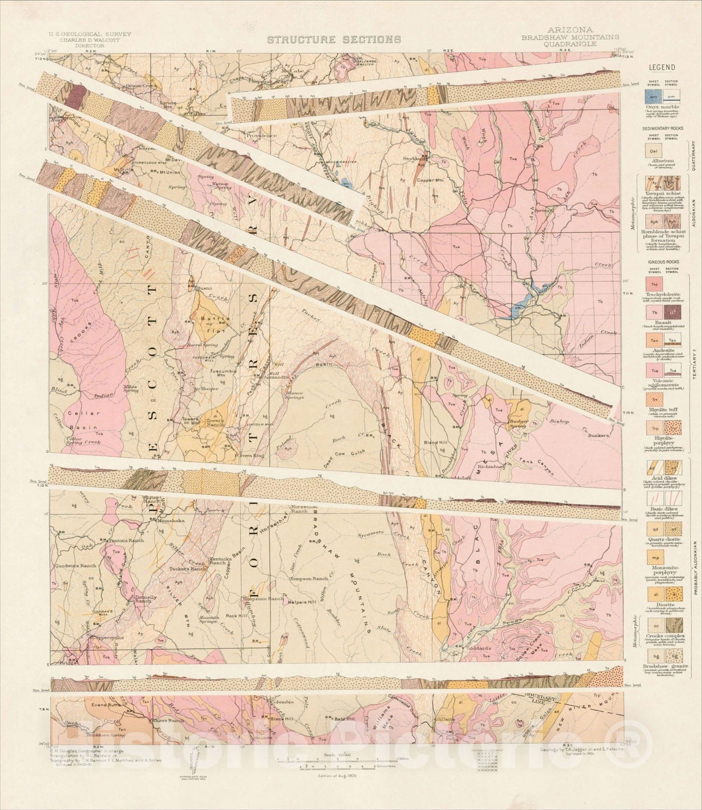 Historic Map : Arizona Bradshaw Mountains Quadrangle -- Structured Sections, 1901, U.S. Geological Survey, Vintage Wall Art