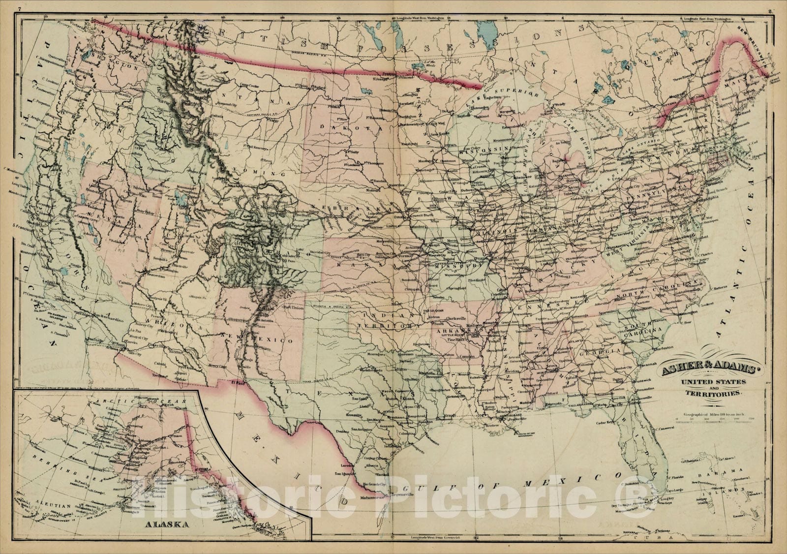 Historic Map : Asher & Adams' Geological Map United States and its Territories, 1874, Asher, Vintage Wall Art
