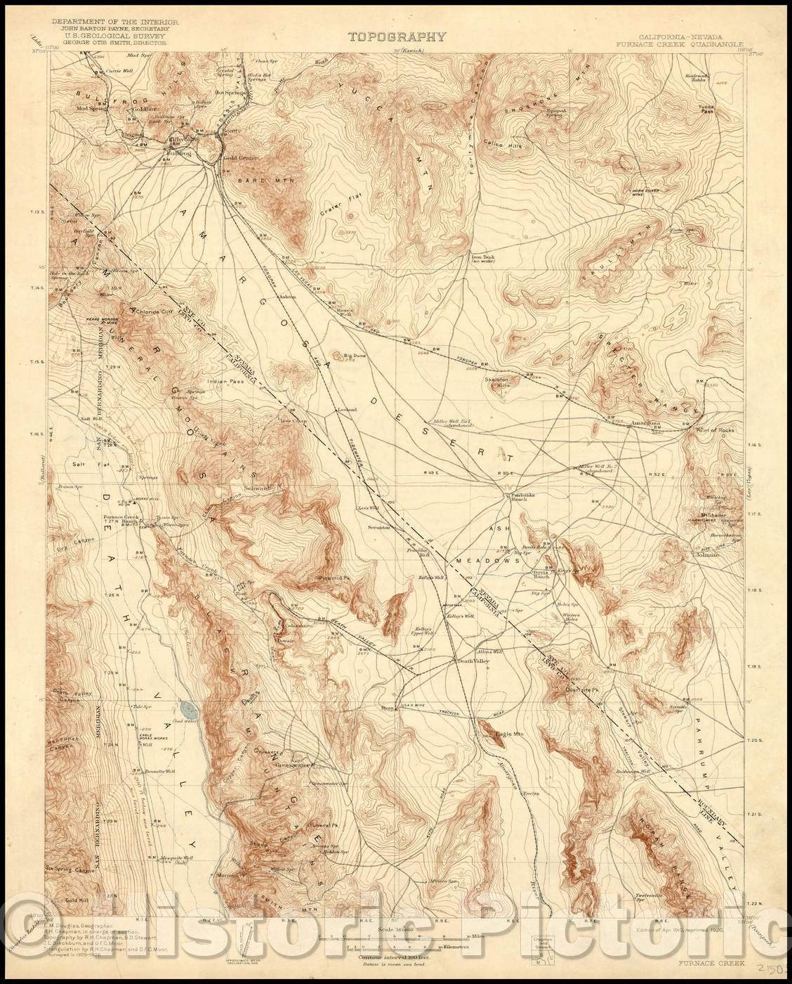 Historic Map - California - Nevada Furnace Creek Quadrangle, 1910, U.S. Geological Survey - Vintage Wall Art