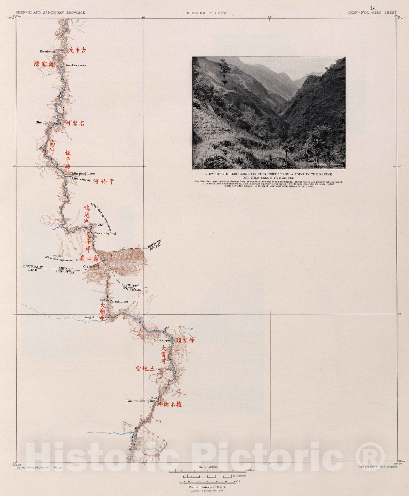 d-6. Chon-Ping-Hien Sheet. | Research in China. 1903-1904. Geographical and Geological Maps. Bailey Willis, Geologist in Charge. Published by the Carnegie Institution of Washington. Includes several superb landscape photos. | A very early survey expedition in China. Includes several superb landscape photos.