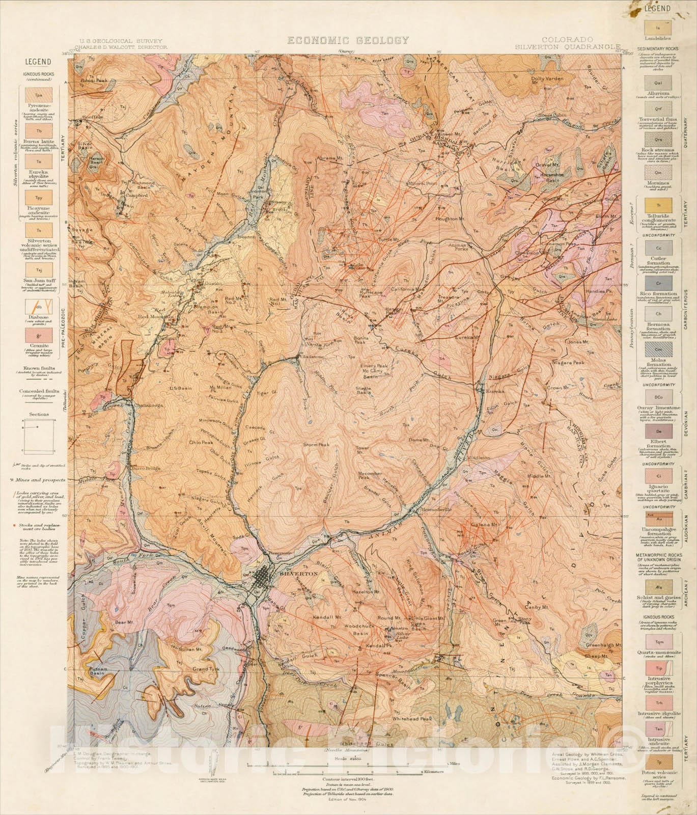 Historic Map : Colorado Silverton Quadrangle -- Economic Geology (Ouray), 1901, U.S. Geological Survey, Vintage Wall Art
