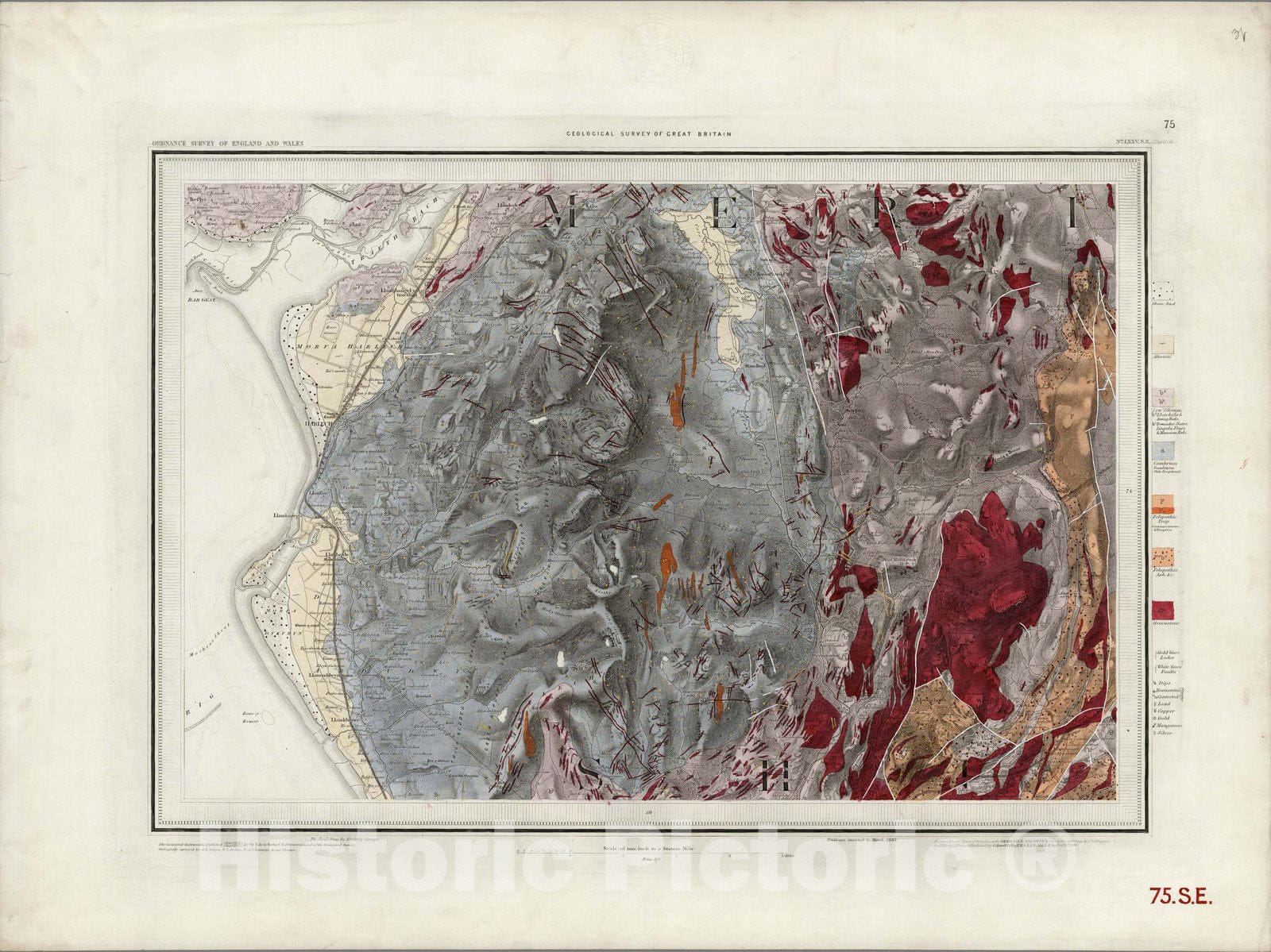 Historic Map : England, Geologic Atlas Map, 75. Harlech, SE Quad. 1883 , Vintage Wall Art