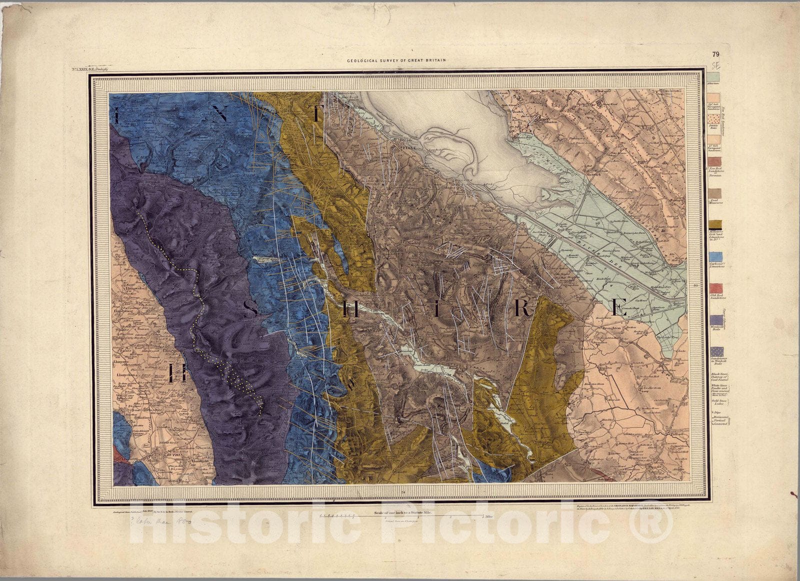 • Historic Map : England, Geologic Atlas Map, 79. Denbigh, SE Quad. 1850 , Vintage Wall Art