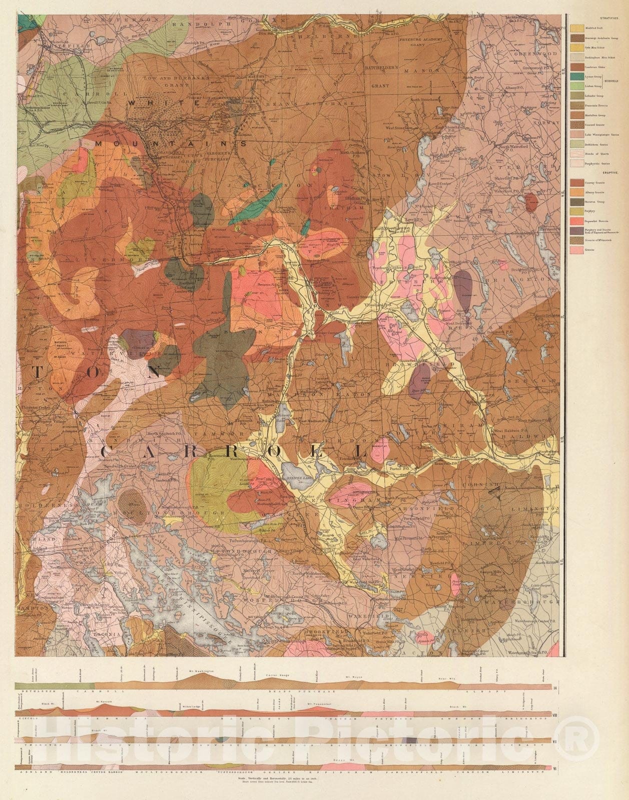 • .Historic Map : (General geological map of New Hampshire. Sheet 4), 1878, Vintage Wall Art