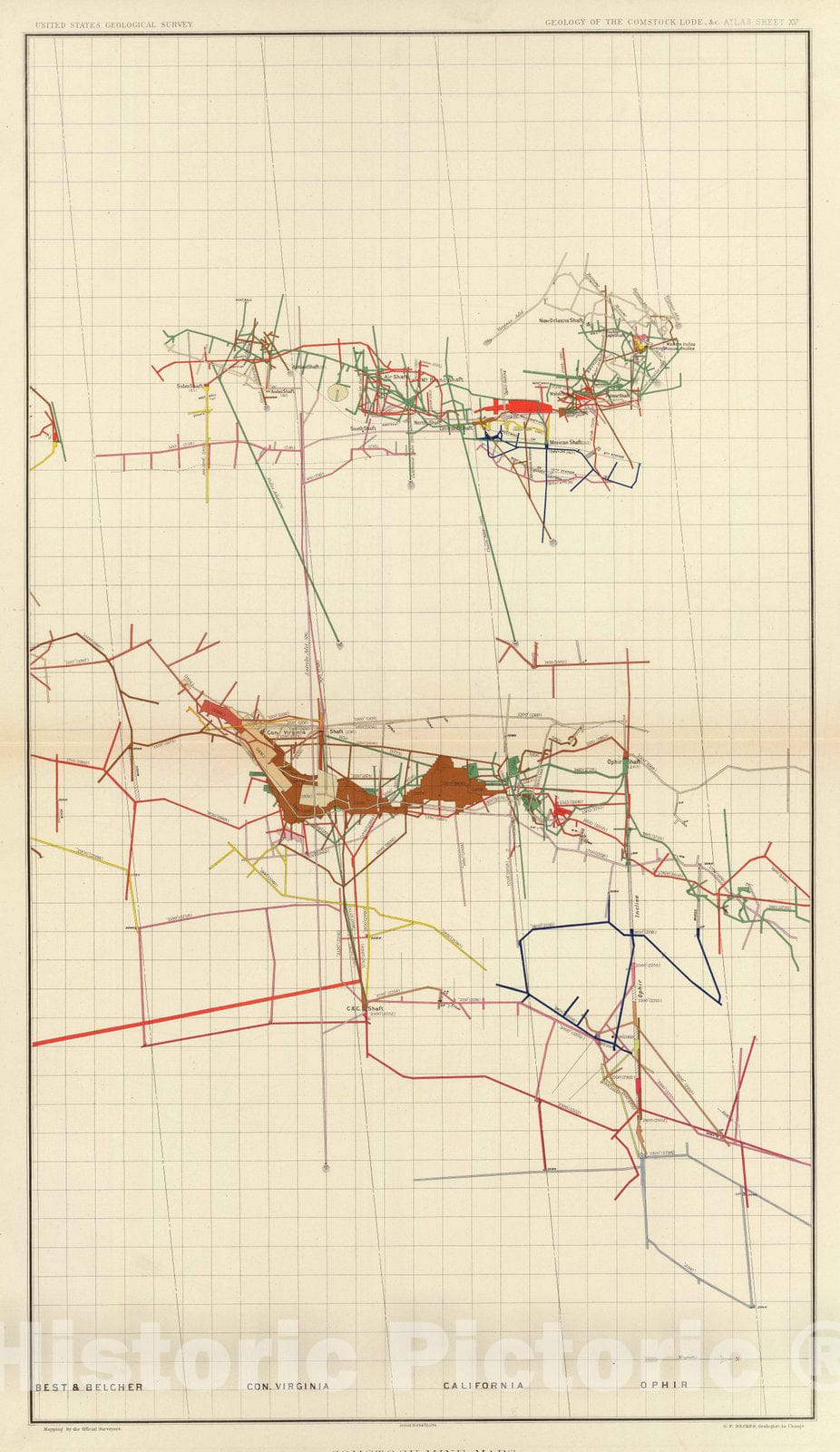 Historic Map : Geologic Atlas - 1882 Comstock Mine Maps. Number III. - Vintage Wall Art