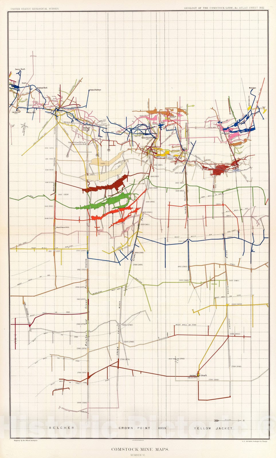 • .Historic Map : Geologic Atlas - 1882 Comstock Mine Maps. Number VI. - Vintage Wall Art
