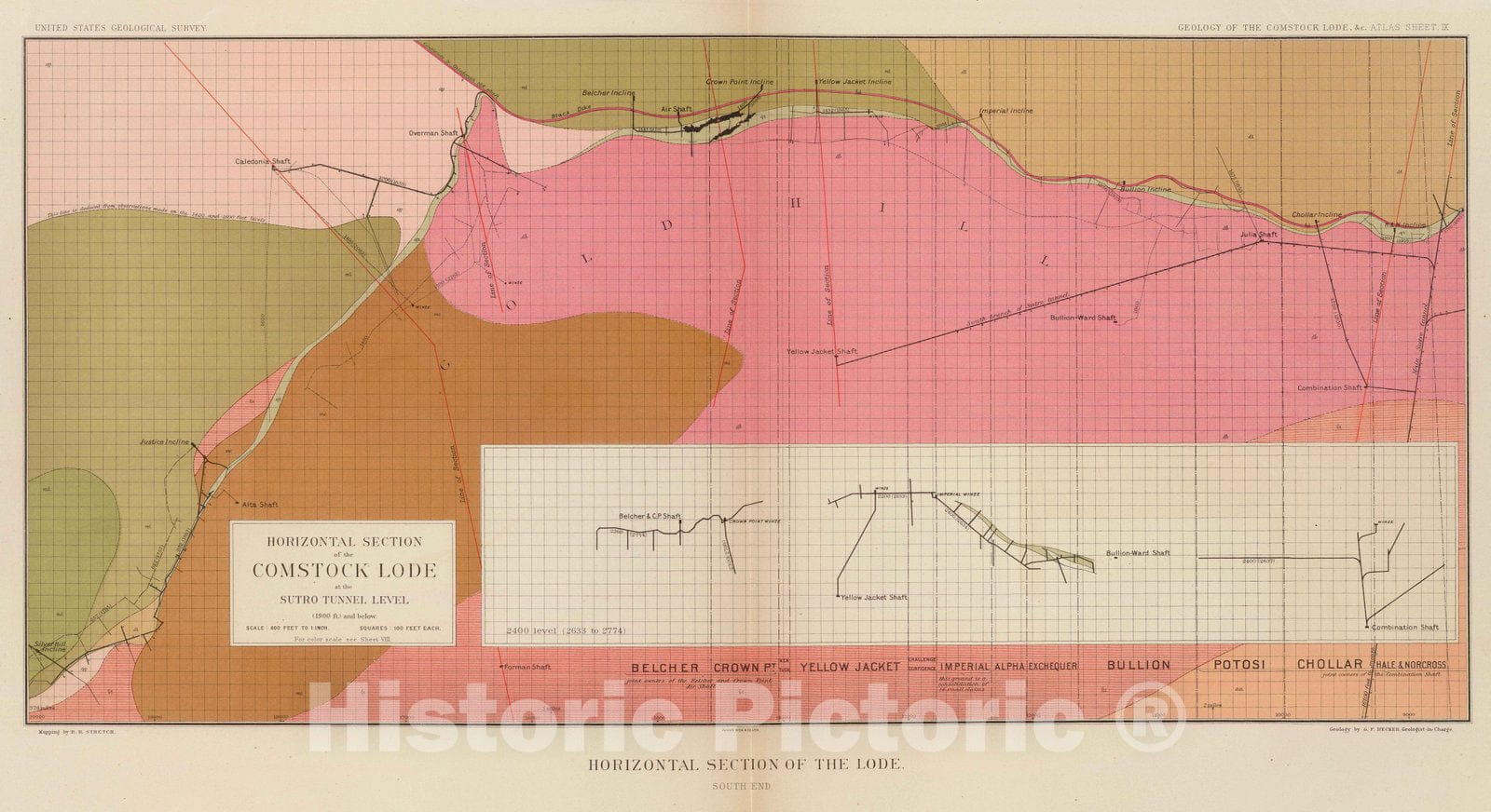 Geologic Atlas - 1882 Horizontal Section of the Comstock Lode at the Sutro Tunnel Level (South End).