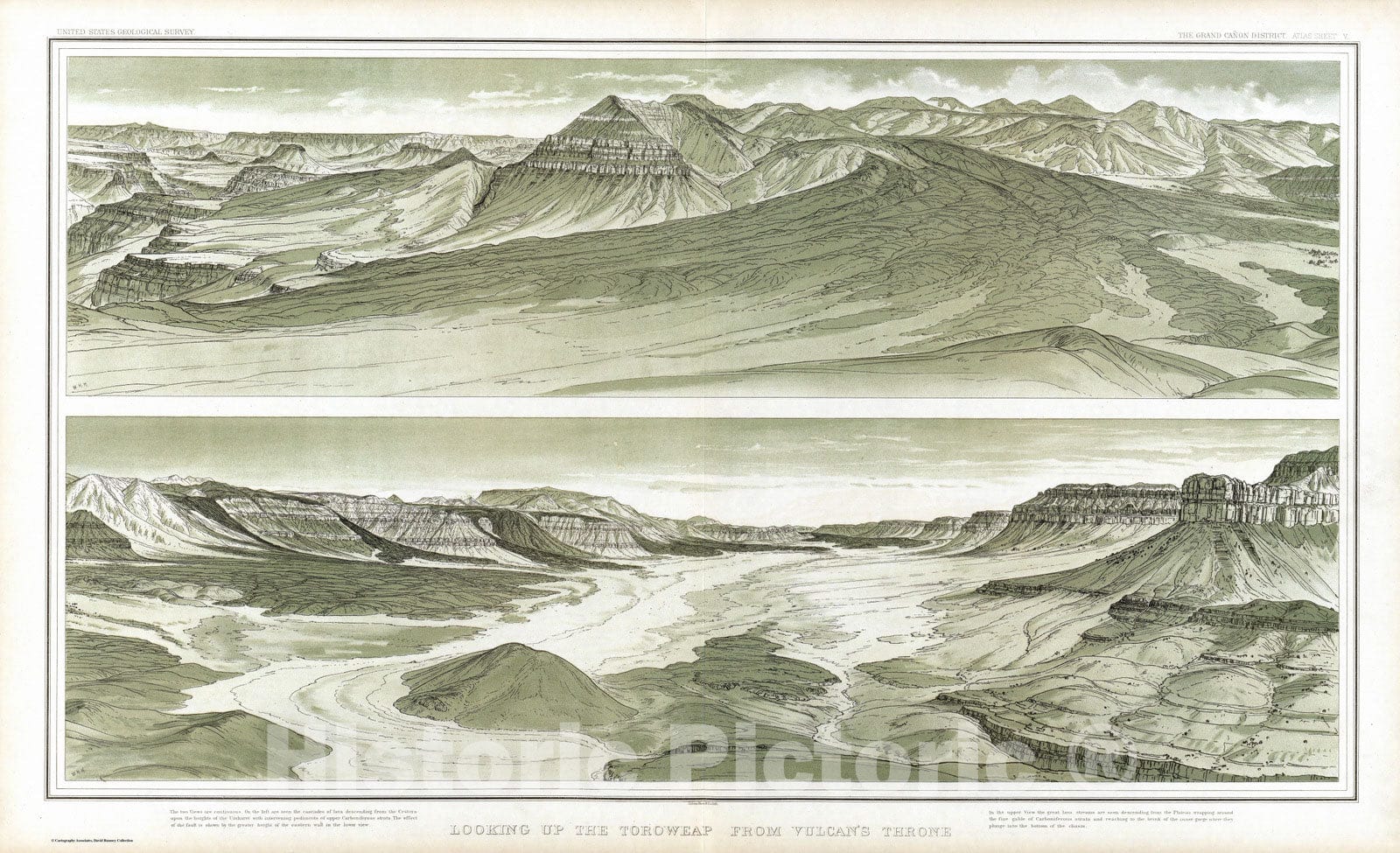 • .Historic Map : Geologic Atlas - 1882 Looking up the Toroweap from Vulcan's Throne. - Vintage Wall Art