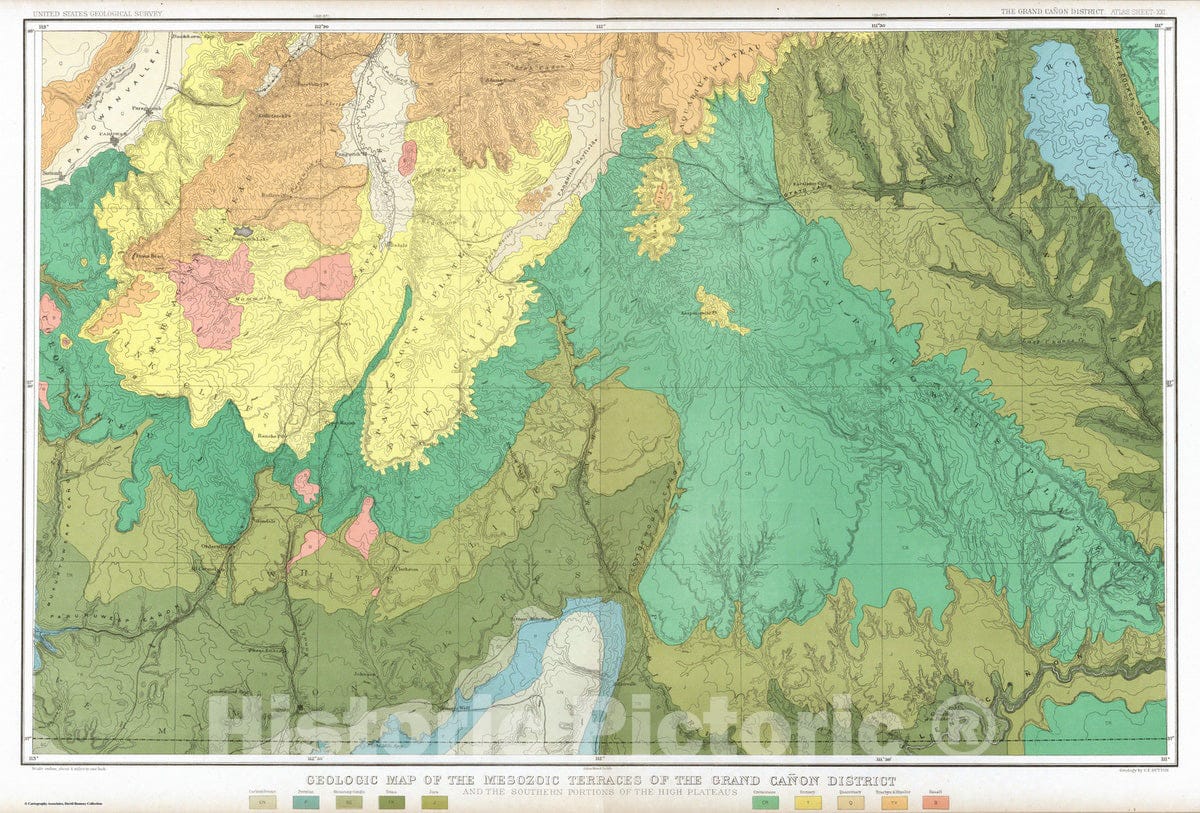 Geologic Atlas - 1882 Geologic Map Of The Mesozoic Terraces Of The Grand Canon District.