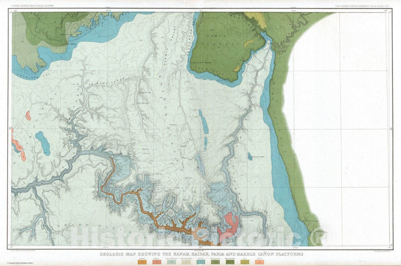 Historic Map : Geologic Atlas - 1882 Geologic Map Showing The Kanab, Paria And Marble Canon Platforms. - Vintage Wall Art