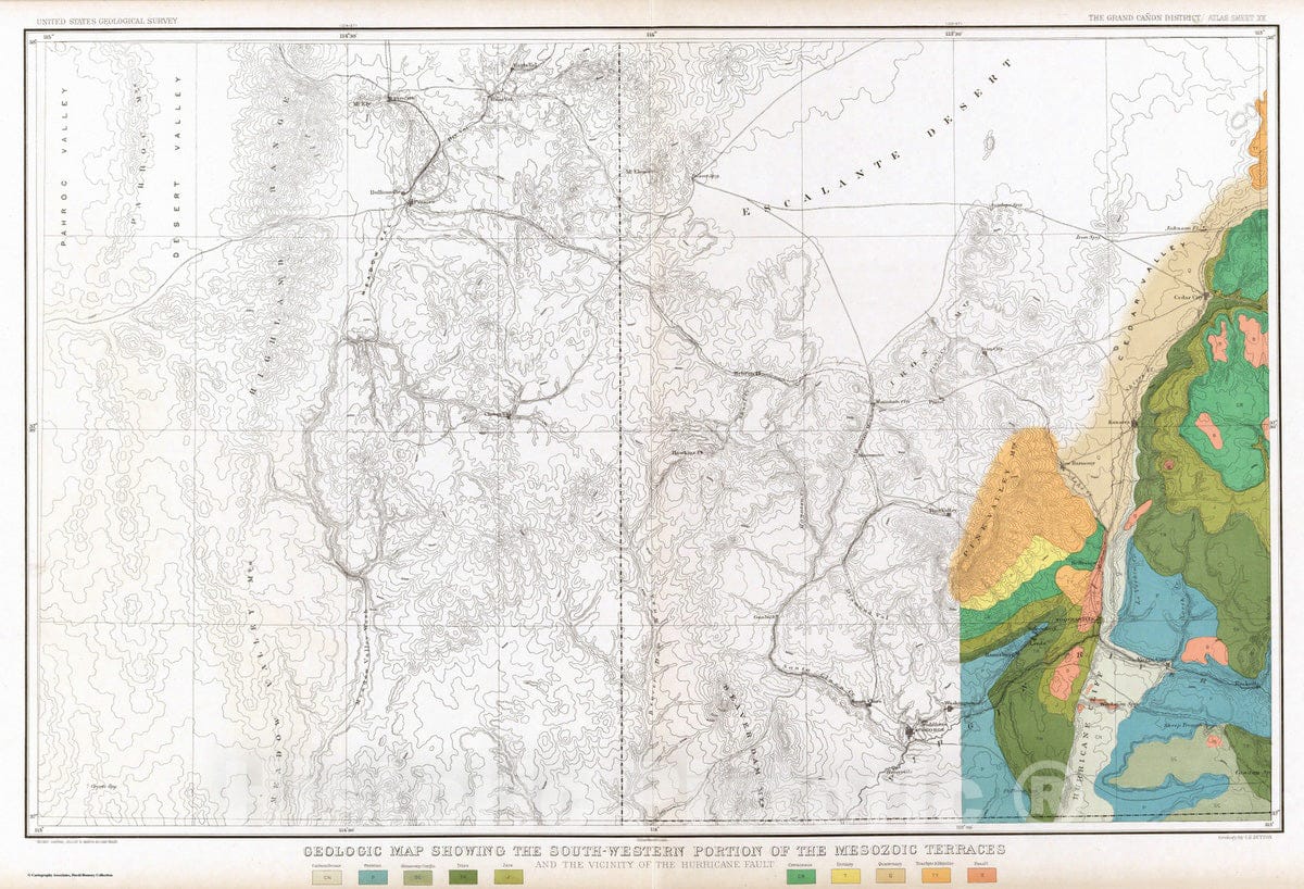 Historic Map : Geologic Atlas - 1882 Geologic Map Showing The South-Western Portion Of The Mesozoic Terraces. - Vintage Wall Art