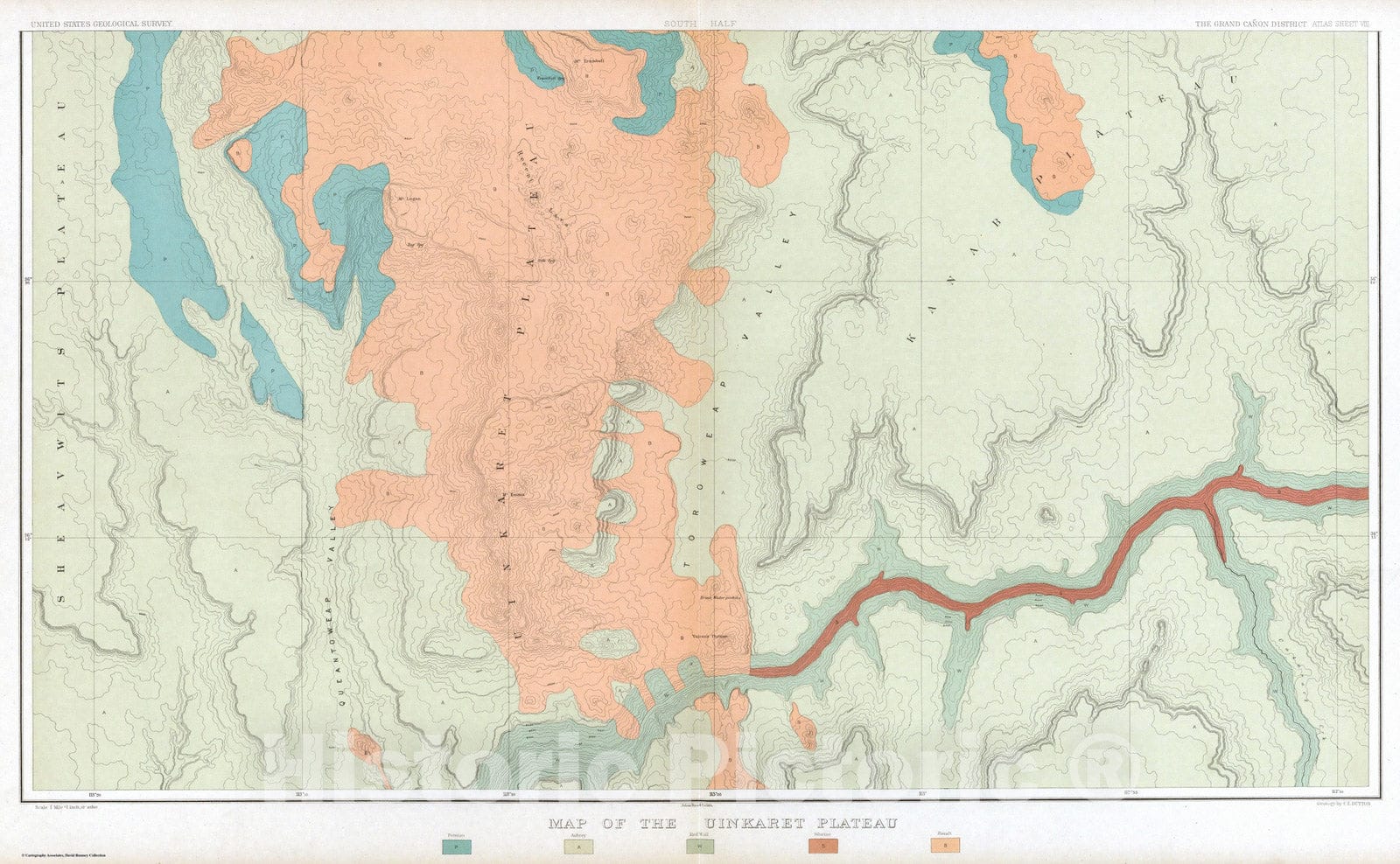Geologic Atlas - 1882 Map Of The Uinkaret Plateau. South Half.