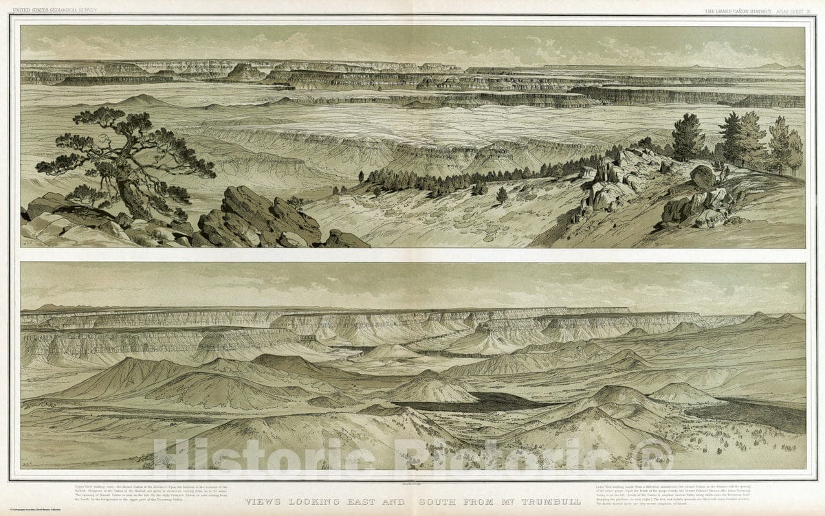 Historic Map : Geologic Atlas - 1882 Views looking east and south from Mt. Trumbull. - Vintage Wall Art