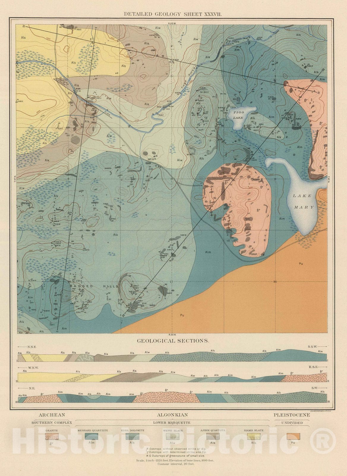 Historic Map : Geologic Atlas - 1896 Detailed Geology Sheet XXXVII. - Vintage Wall Art