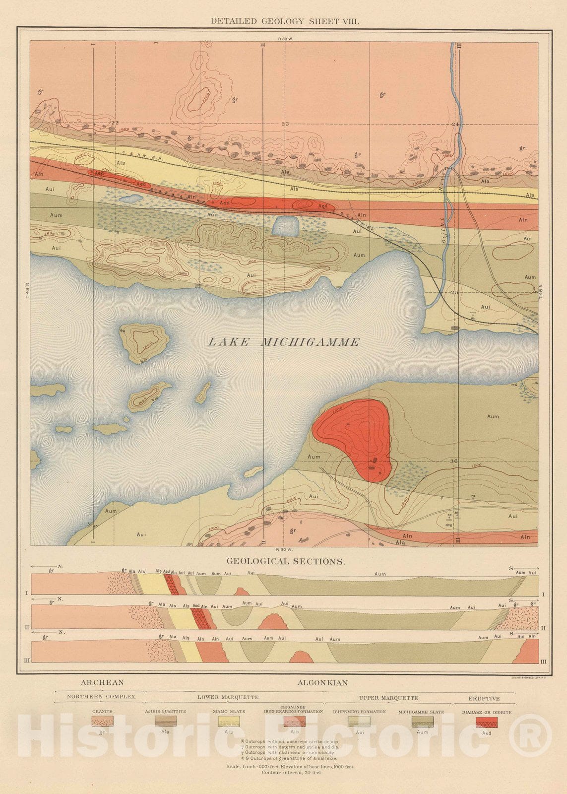 Historic Map : Geologic Atlas - 1896 Detailed Geology Sheet VIII. - Vintage Wall Art