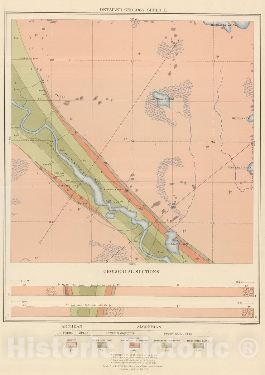 Historic Map : Geologic Atlas - 1896 Detailed Geology Sheet X. - Vintage Wall Art