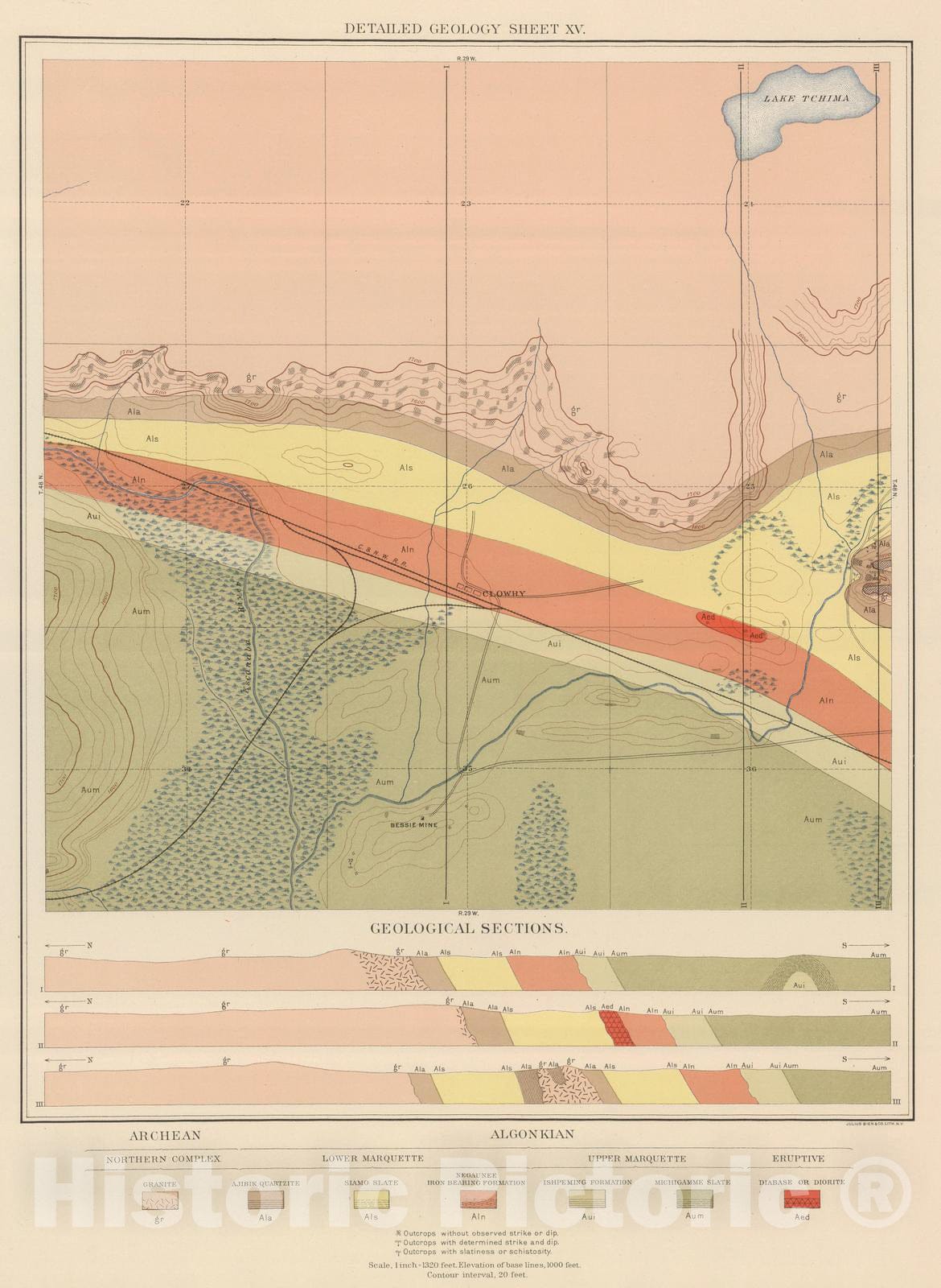 Historic Map : Geologic Atlas - 1896 Detailed Geology Sheet XVI. - Vintage Wall Art