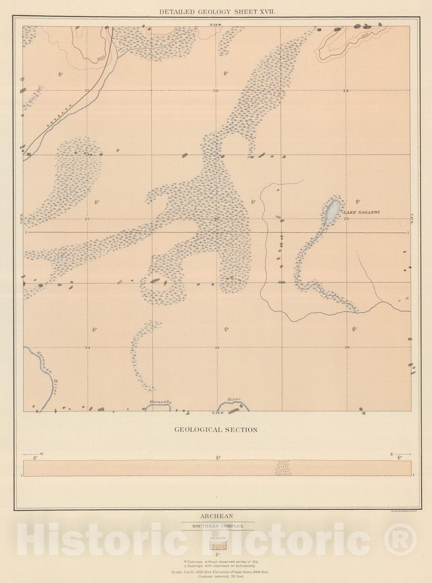 Historic Map : Geologic Atlas - 1896 Detailed Geology Sheet XVII. - Vintage Wall Art