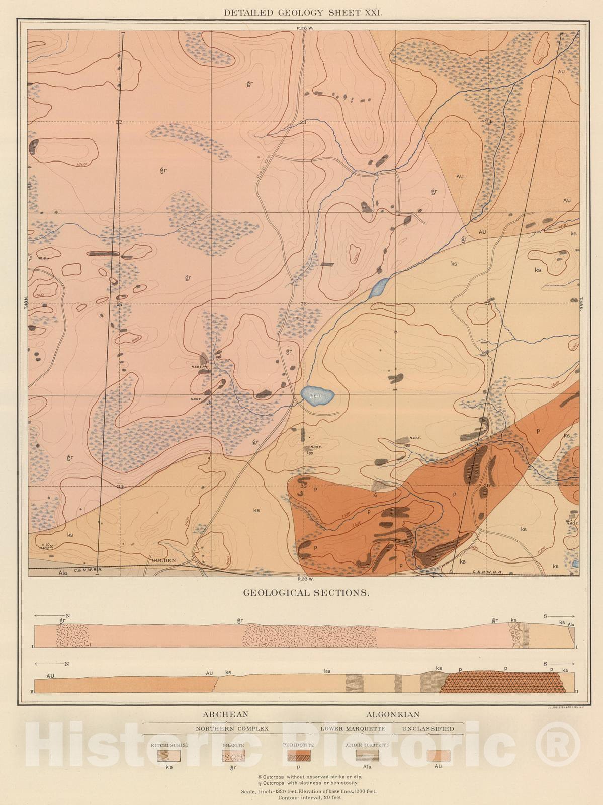 Historic Map : Geologic Atlas - 1896 Detailed Geology Sheet XXI. - Vintage Wall Art