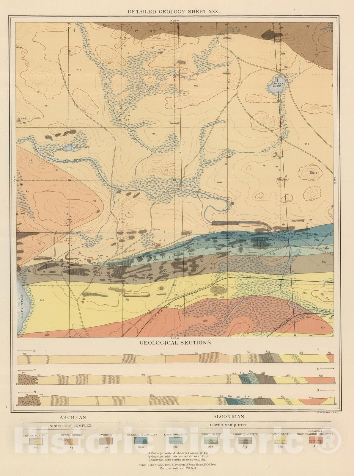 Historic Map : Geologic Atlas - 1896 Detailed Geology Sheet XXX. - Vintage Wall Art