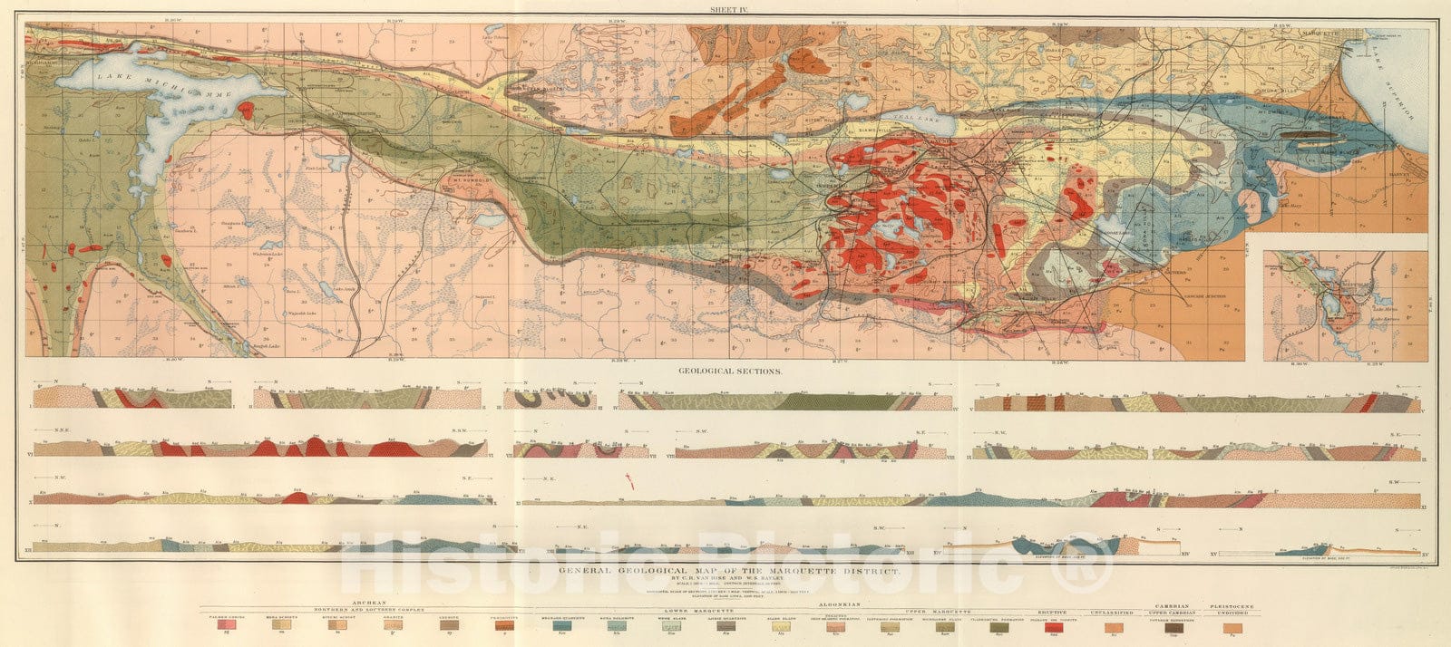 Historic Map : Geologic Atlas - 1896 General Geological Map of the Marquette District. - Vintage Wall Art