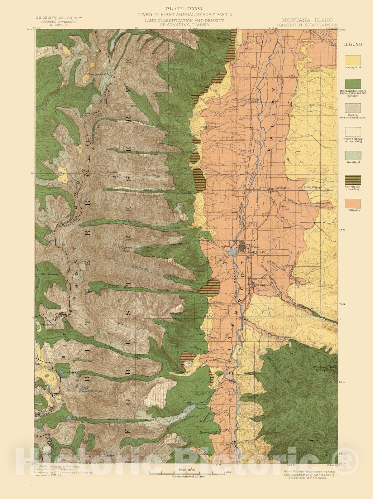 Historic Map - Geologic Atlas - 1900 Plate CXXXVI. Hamilton Quadrangle, Montana-Idaho, Land Classification and Density of Standing Timber.